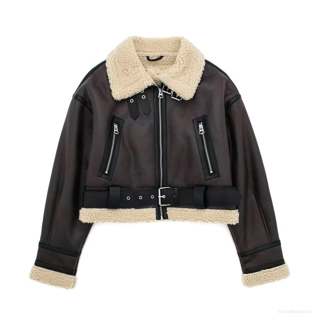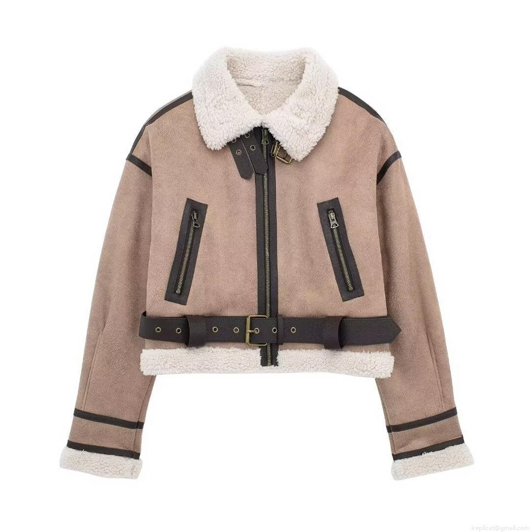 • Women's Faux Suede Biker Jacket With Faux Fur Lining Belted Waist Winter Warm Shearling Aviator Coat Short Streetwear Outerwear Ladies
