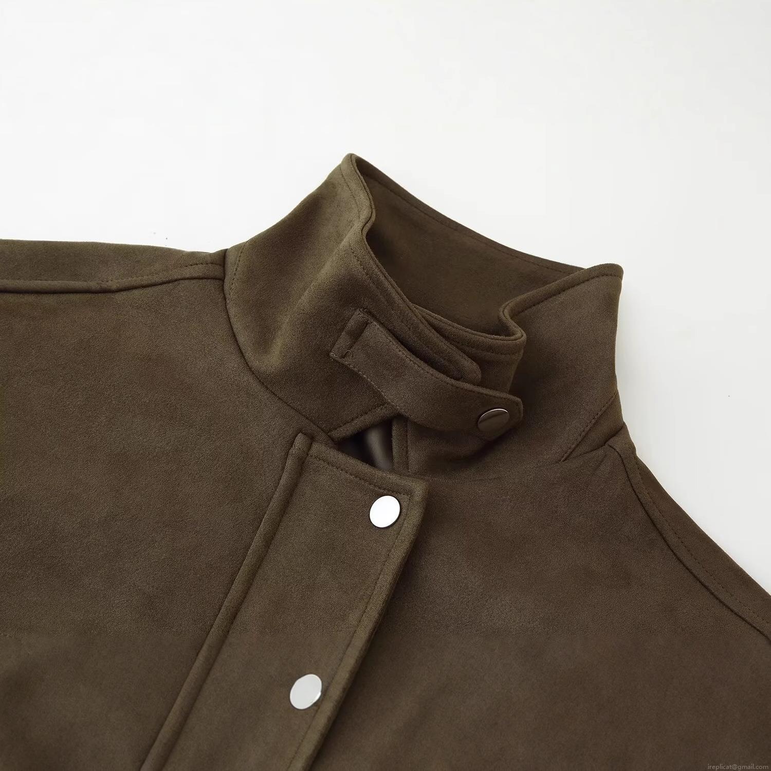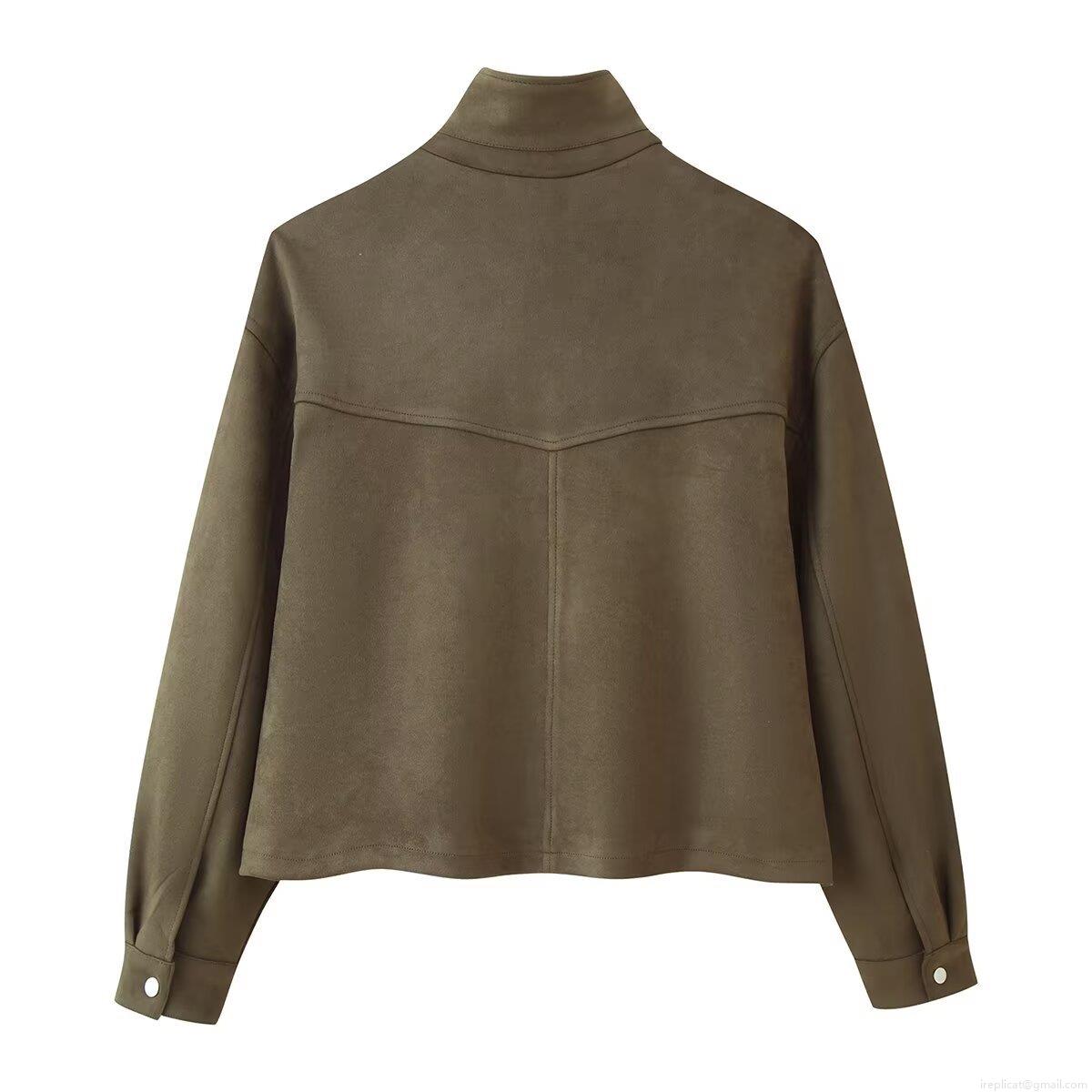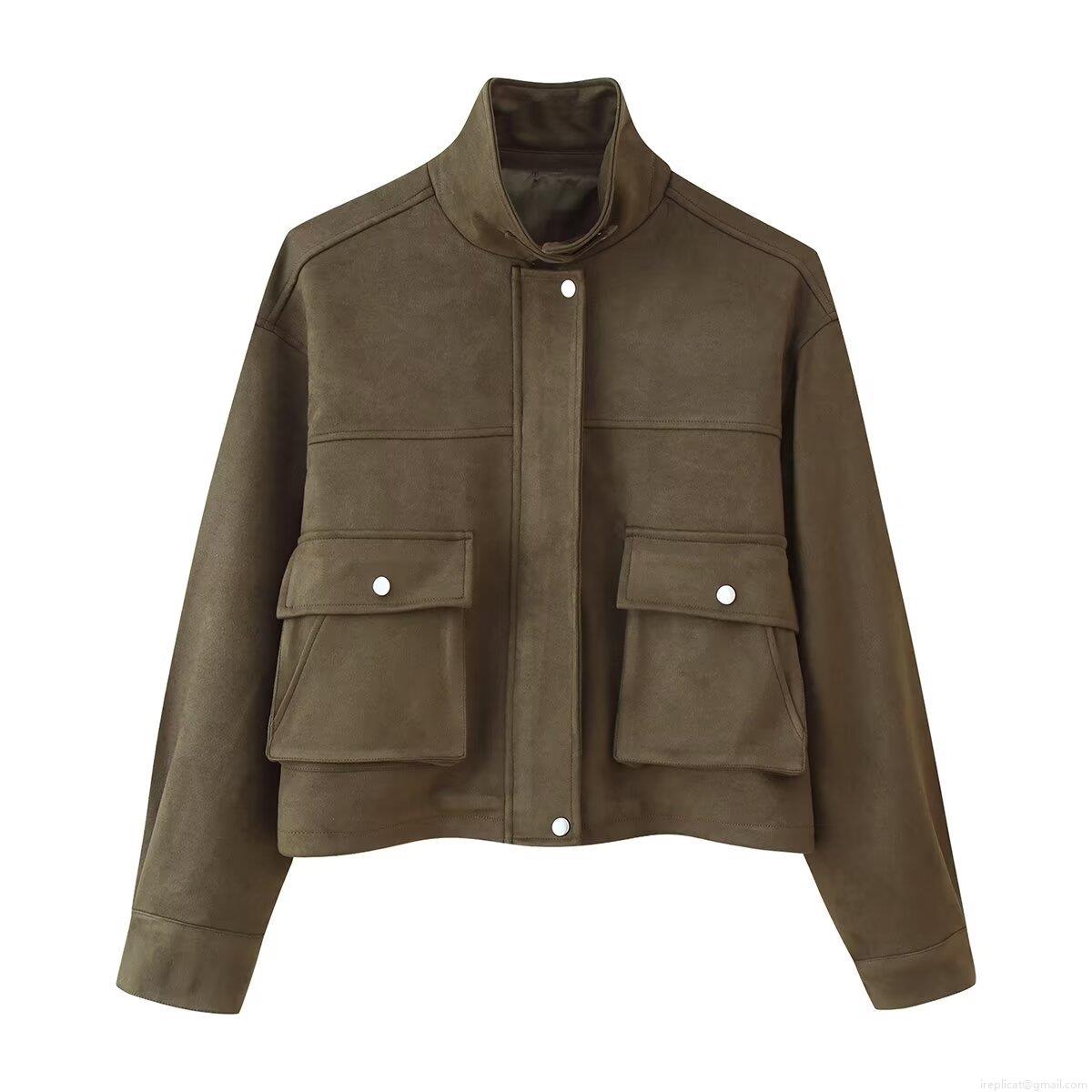 • Women's Faux Suede Bomber Jacket Solid Color Lapel Zipper Outerwear With Pockets Loose Streetwear Fashion Casual Coat For Autumn Spring Lady