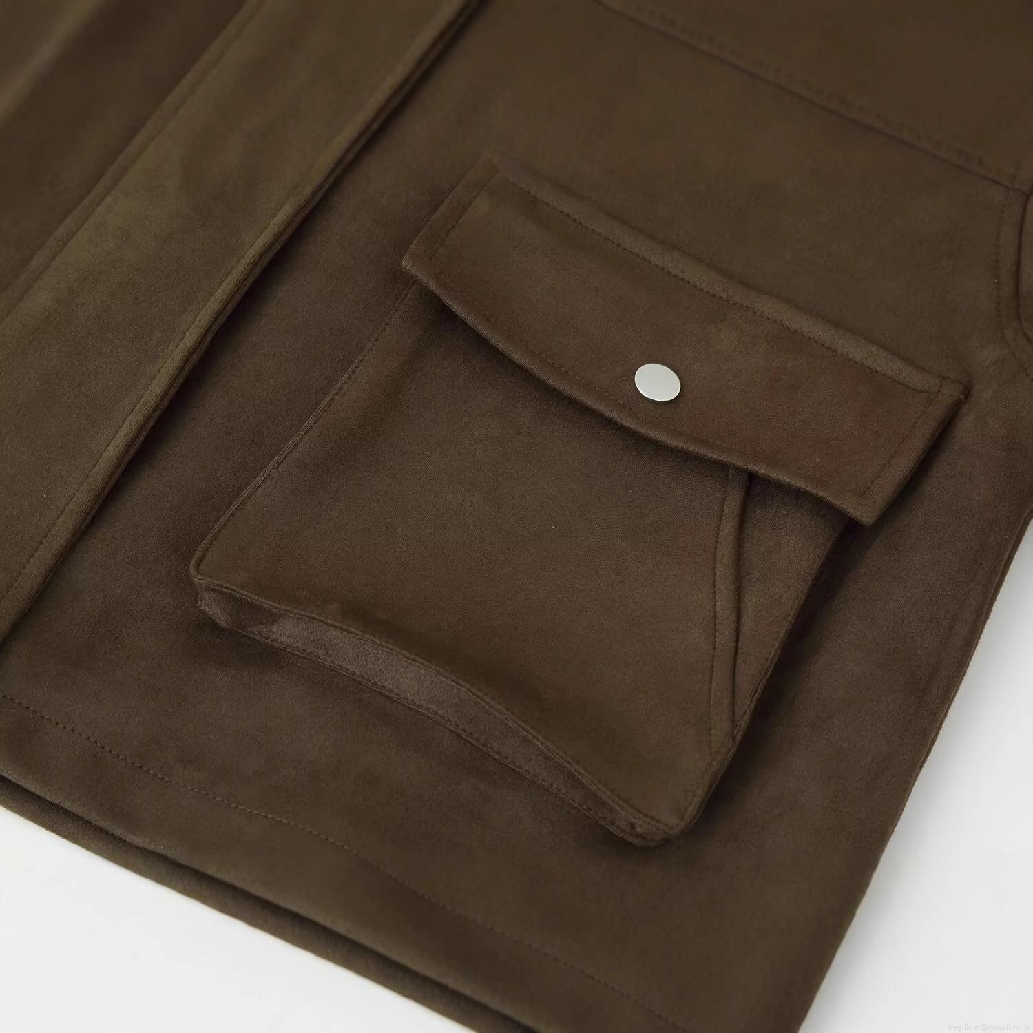 Solid Color, Pocket, Zipper, Suede Texture, 3d Tooling