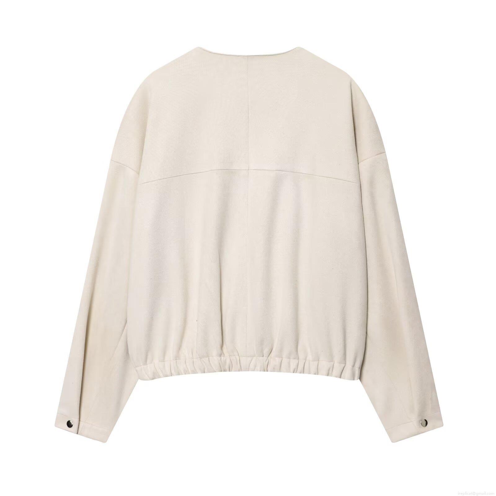 • Women's Faux Suede Bomber Jacket Solid Color Round Neck Zipper Outerwear Loose Fit Casual Streetwear Fashion Baseball Coat For Autumn Winter