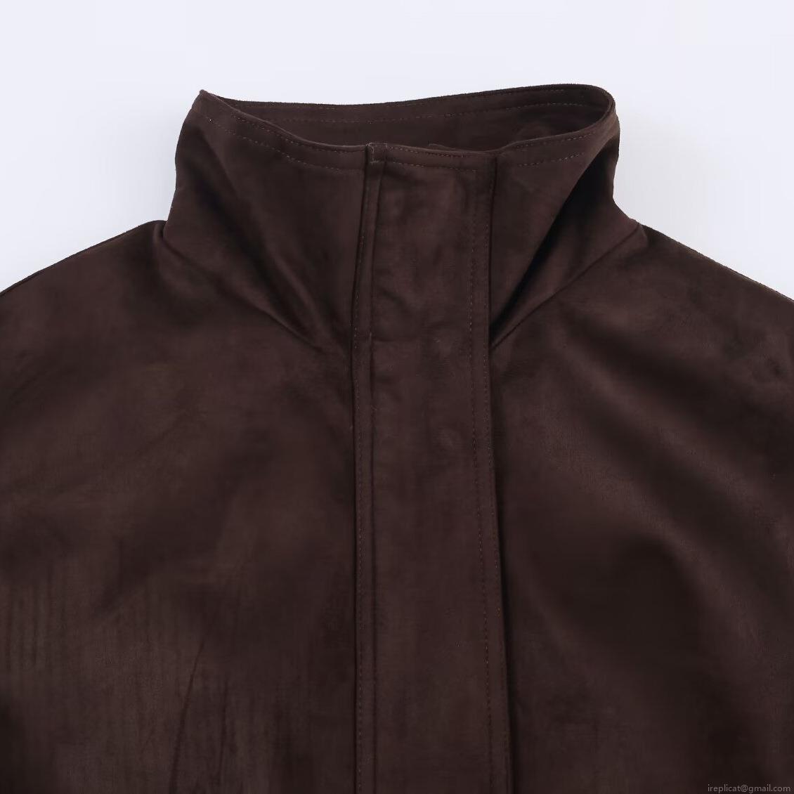 • Women's Faux Suede Bomber Jacket Solid Color Stand Collar Zip Up Short Outerwear Casual Chic Fashion Coat Fall Winter For Ladies