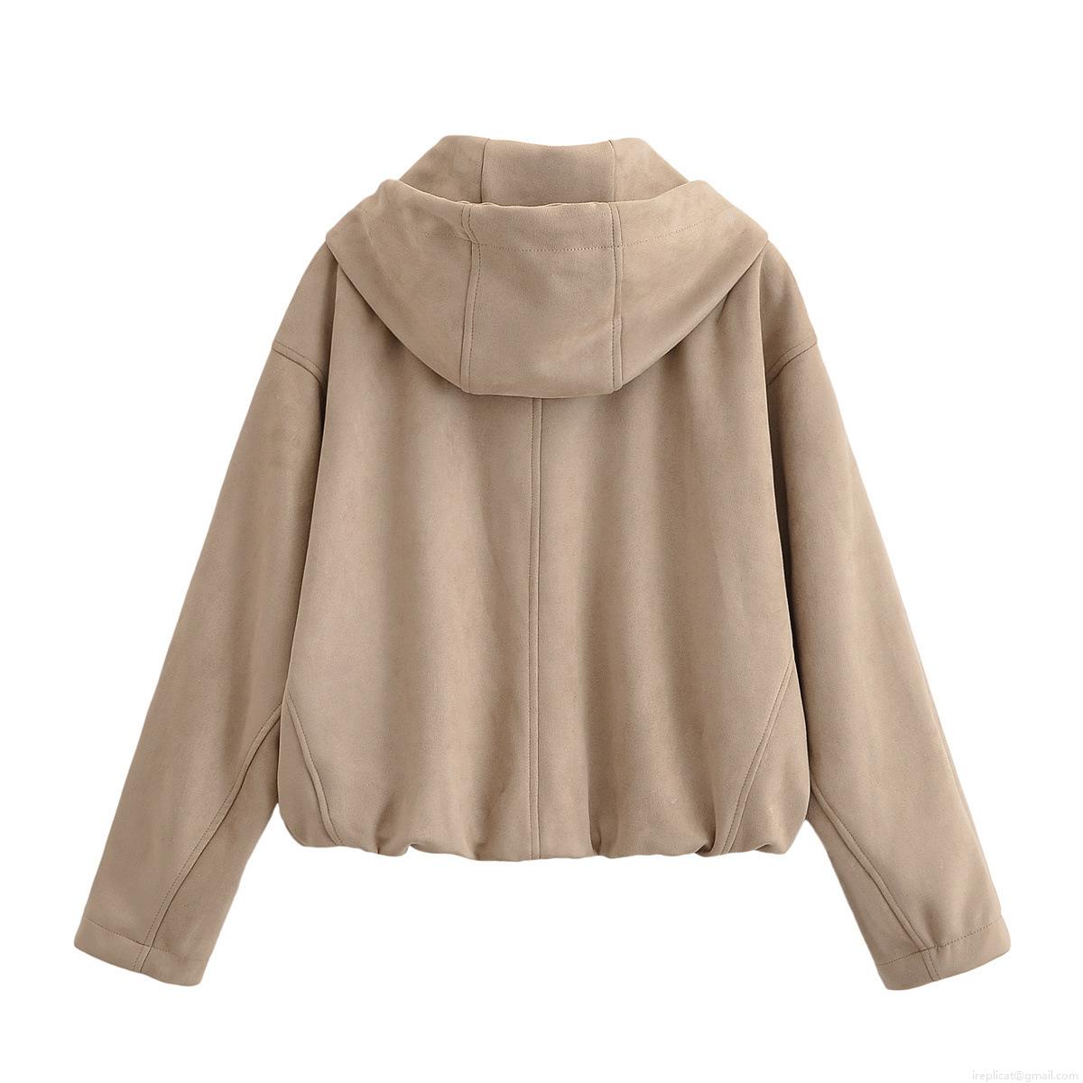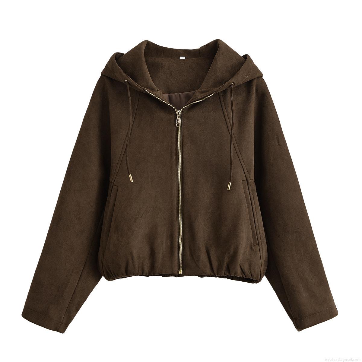 • Women's Faux Suede Hooded Jacket Solid Color Zipper Baseball Coat Casual Long Sleeve Streetwear Outerwear For Women Fall Fashion