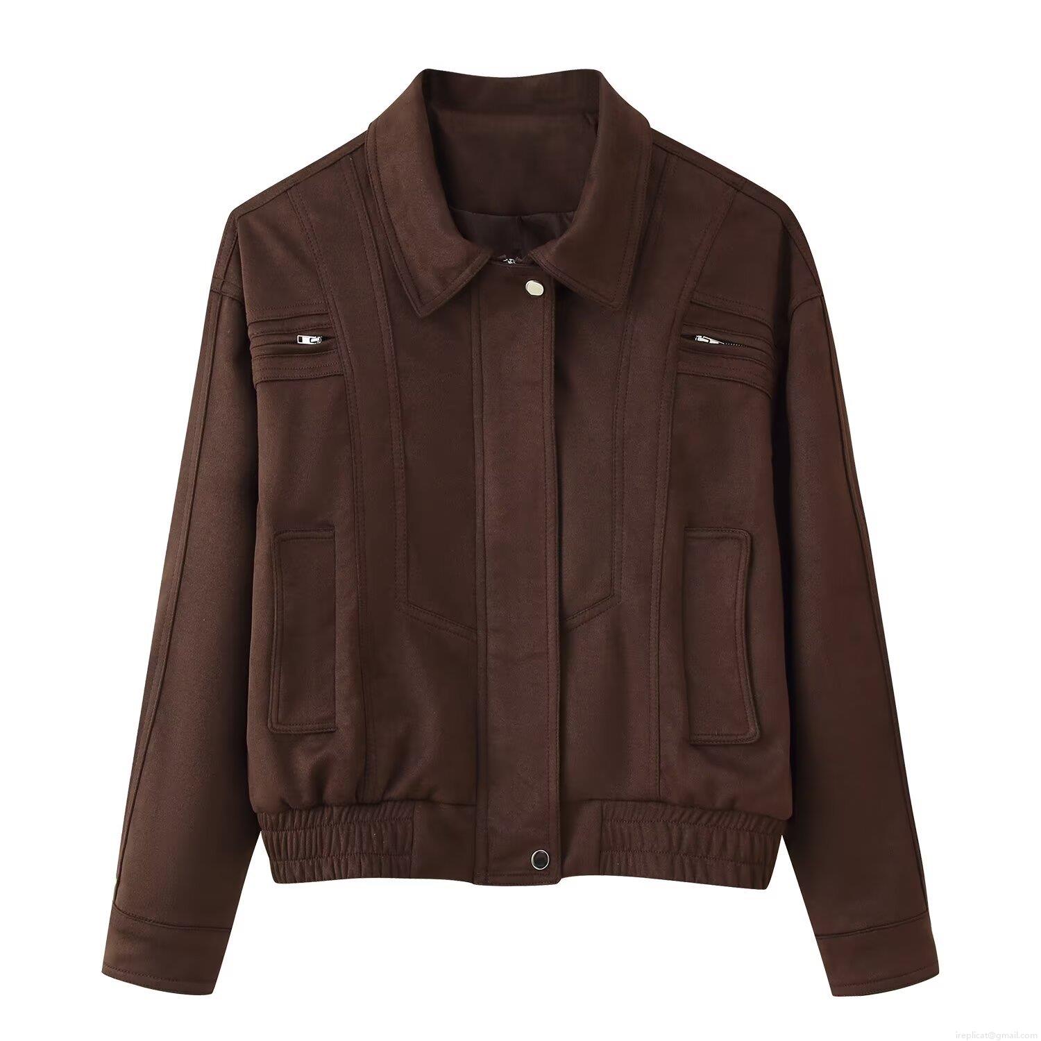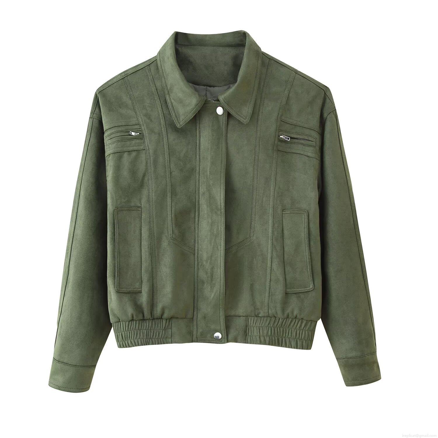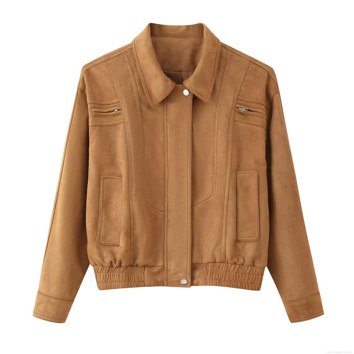 • Women's Faux Suede Jacket Casual Short Bomber Coat Zipper Pocket Lapel Autumn Winter Outerwear Streetwear For Women