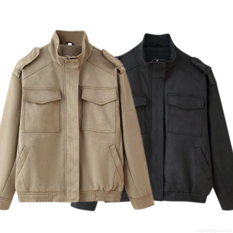 • Women's Faux Suede Jacket Casual Zip Up Workwear Outerwear With Multi Pockets Stand Collar Long Sleeve Coat For Daily Outdoor Fashion