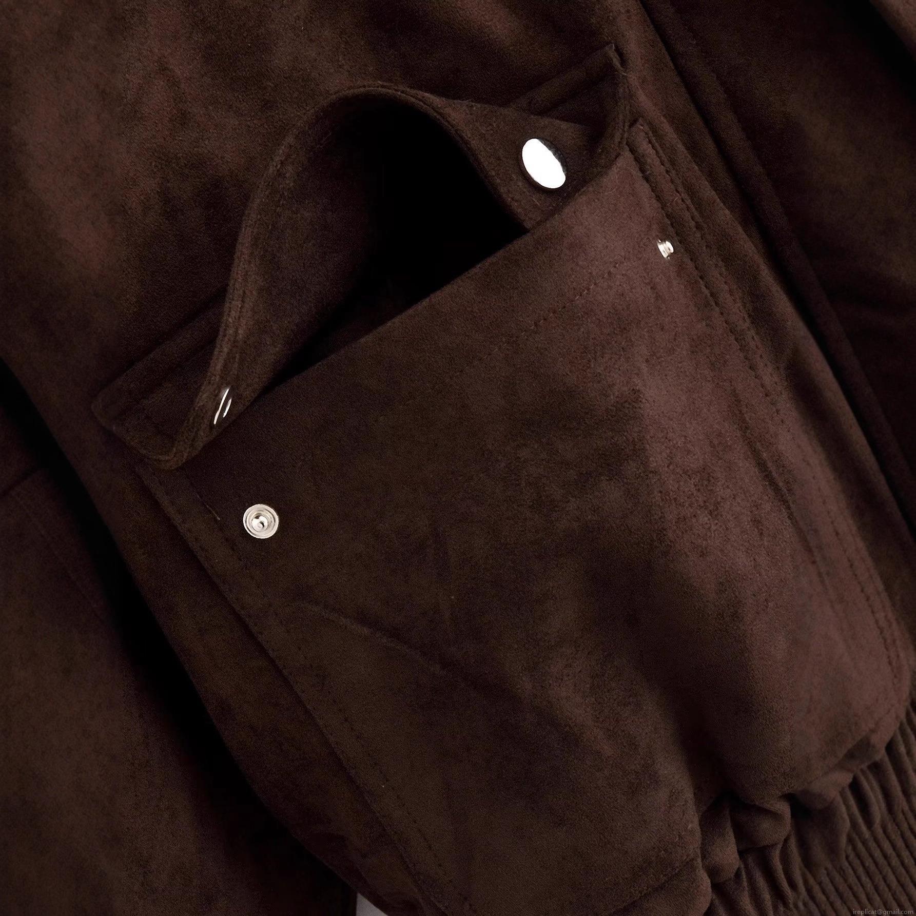 • Women's Faux Suede Jacket Coat With Large Black Faux Fur Collar Loose Fit Street Style Polyester Outerwear With Flap Pockets And Metal Buttons For Winter Autumn