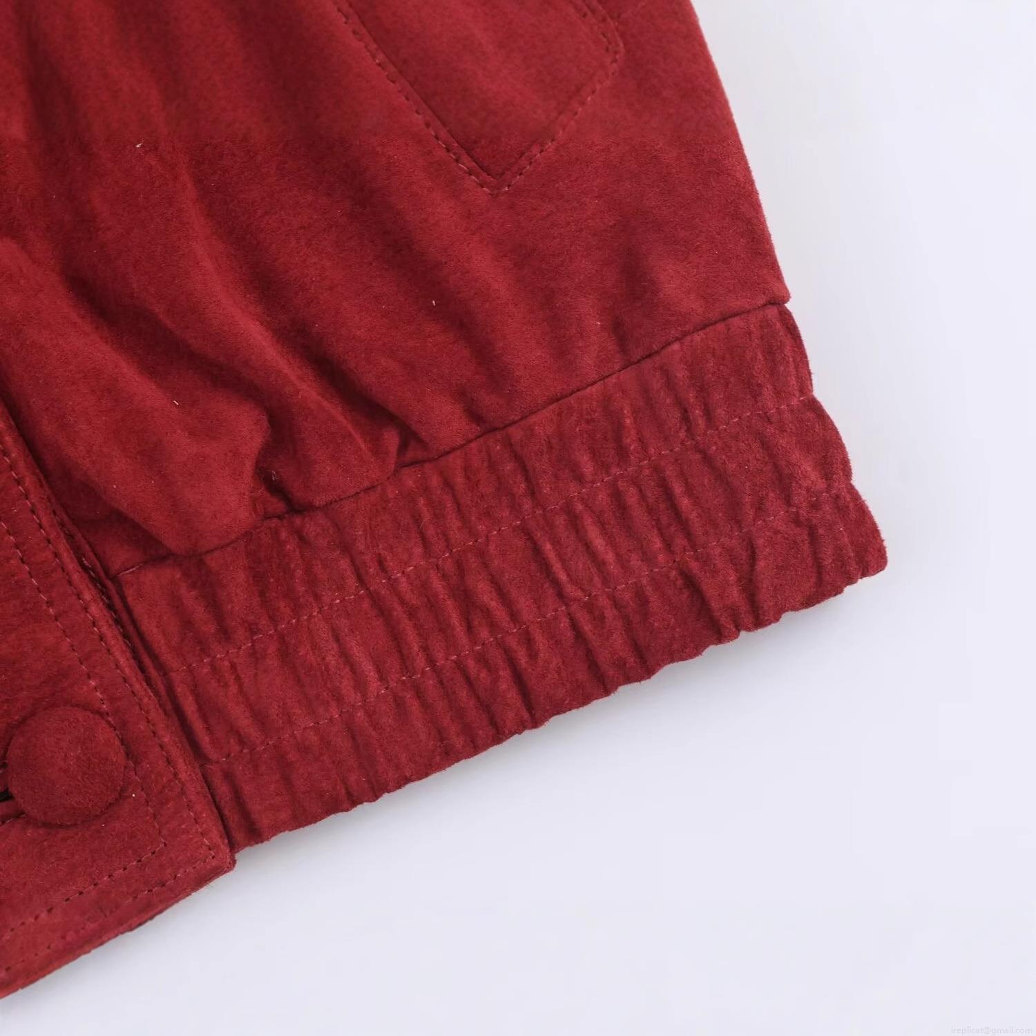 • Women's Faux Suede Jacket Fashion Lapel Double Breasted Short Coat Vintage Brick Red Long Sleeve Casual Outerwear Elegant Socialite Style Utility Cargo Jacket For Women