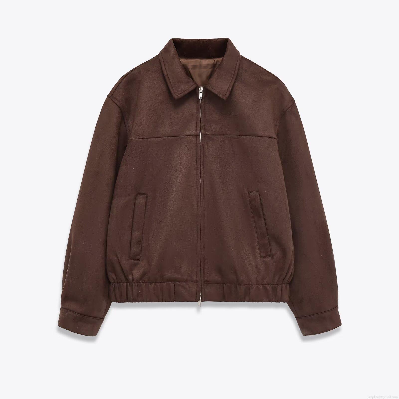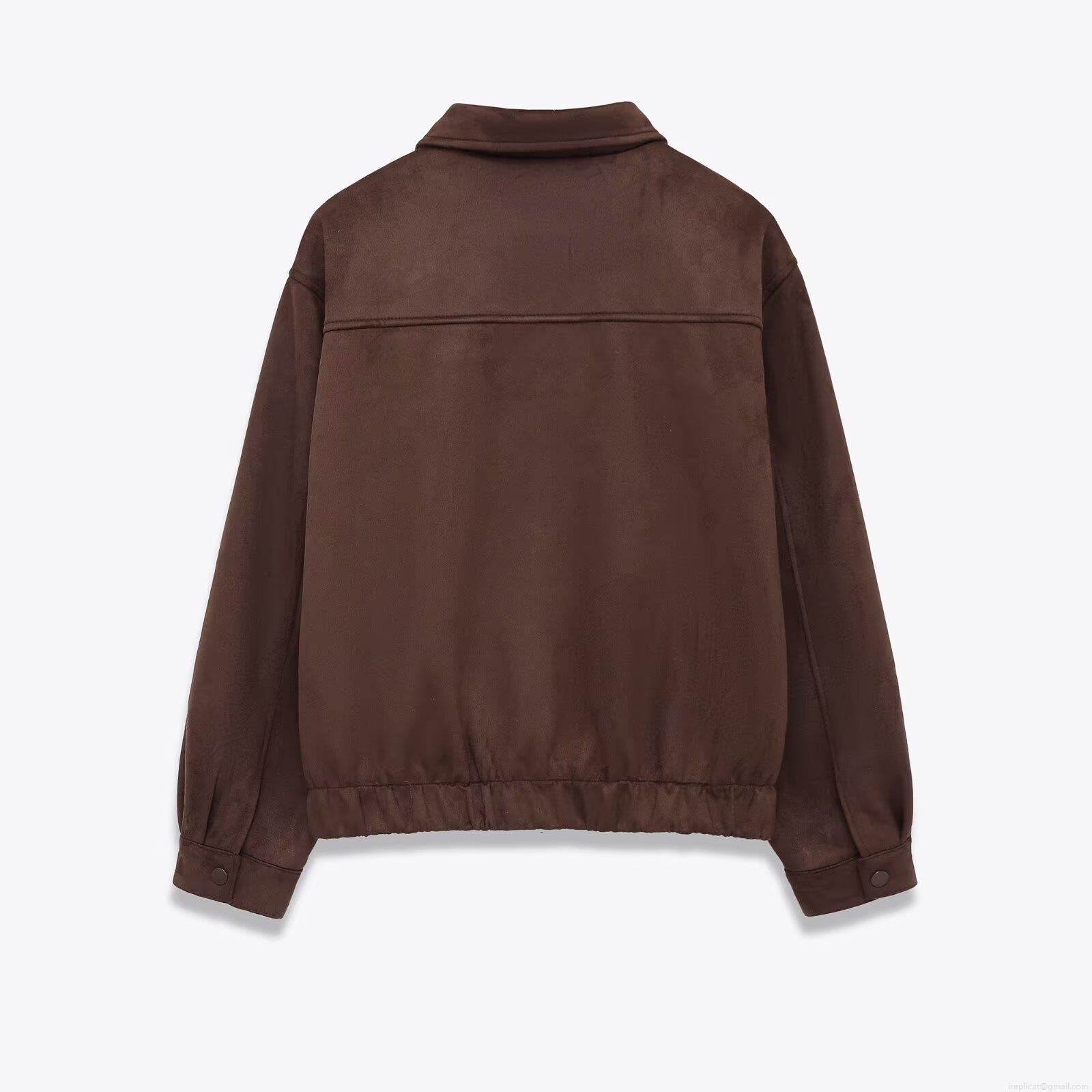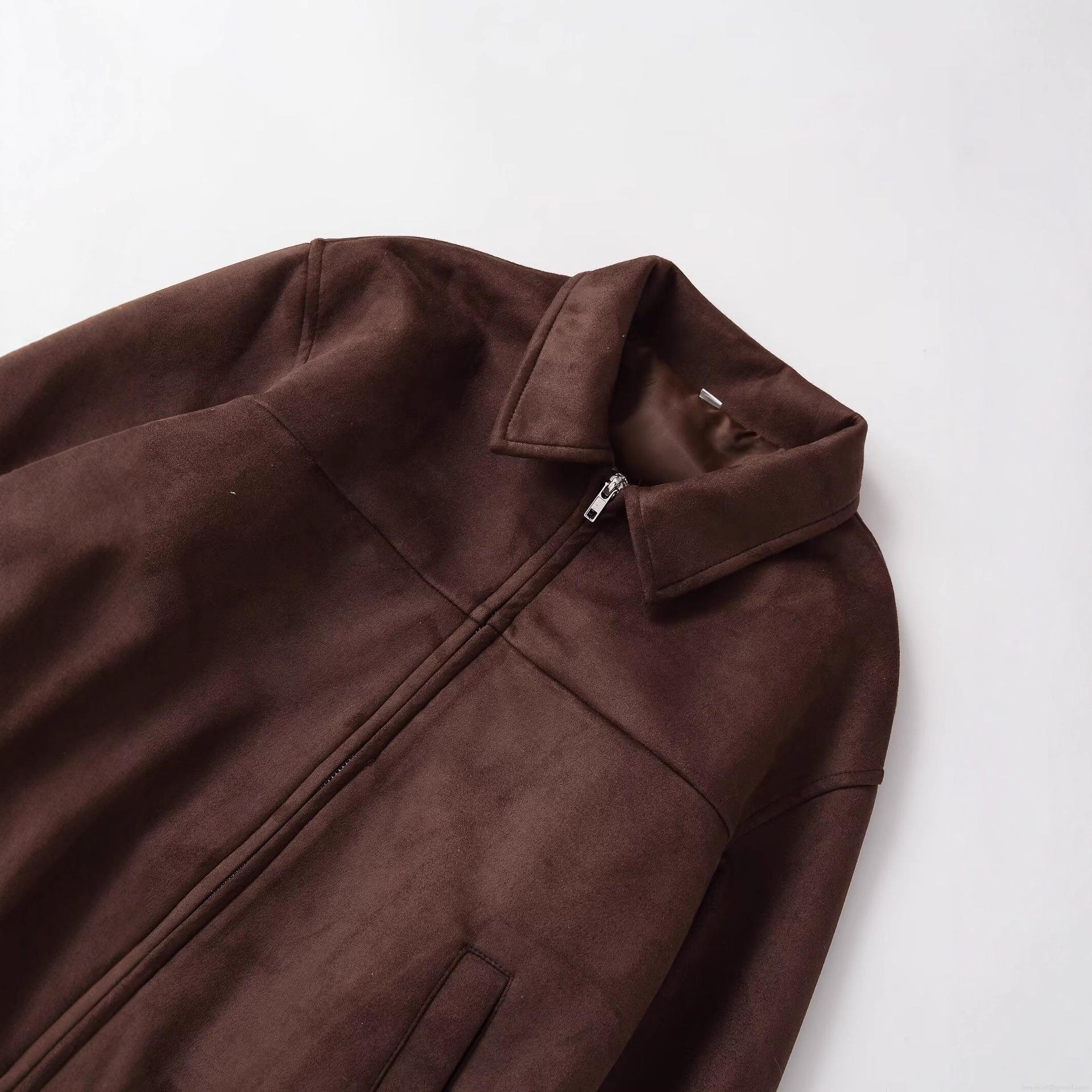 Women's Faux Suede Jacket Lapel Collar Long Sleeve Zipper Up Outerwear European American Streetwear Casual Solid Color Coat For Autumn Winter