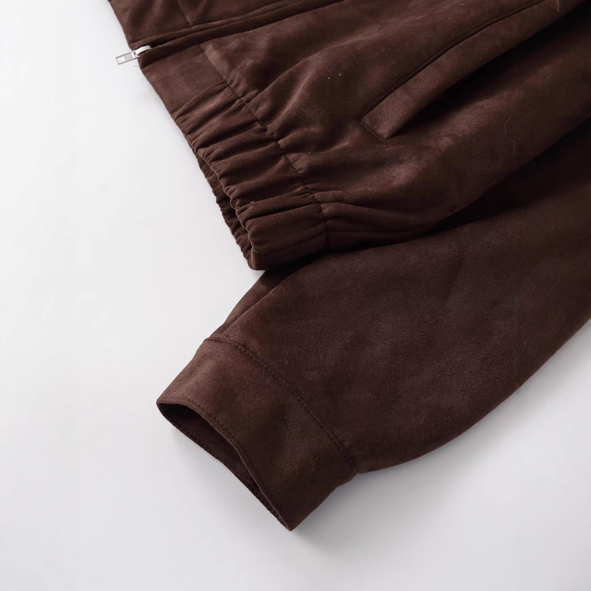 • Women's Faux Suede Jacket Lapel Collar Long Sleeve Zipper Up Outerwear European American Streetwear Casual Solid Color Coat For Autumn Winter
