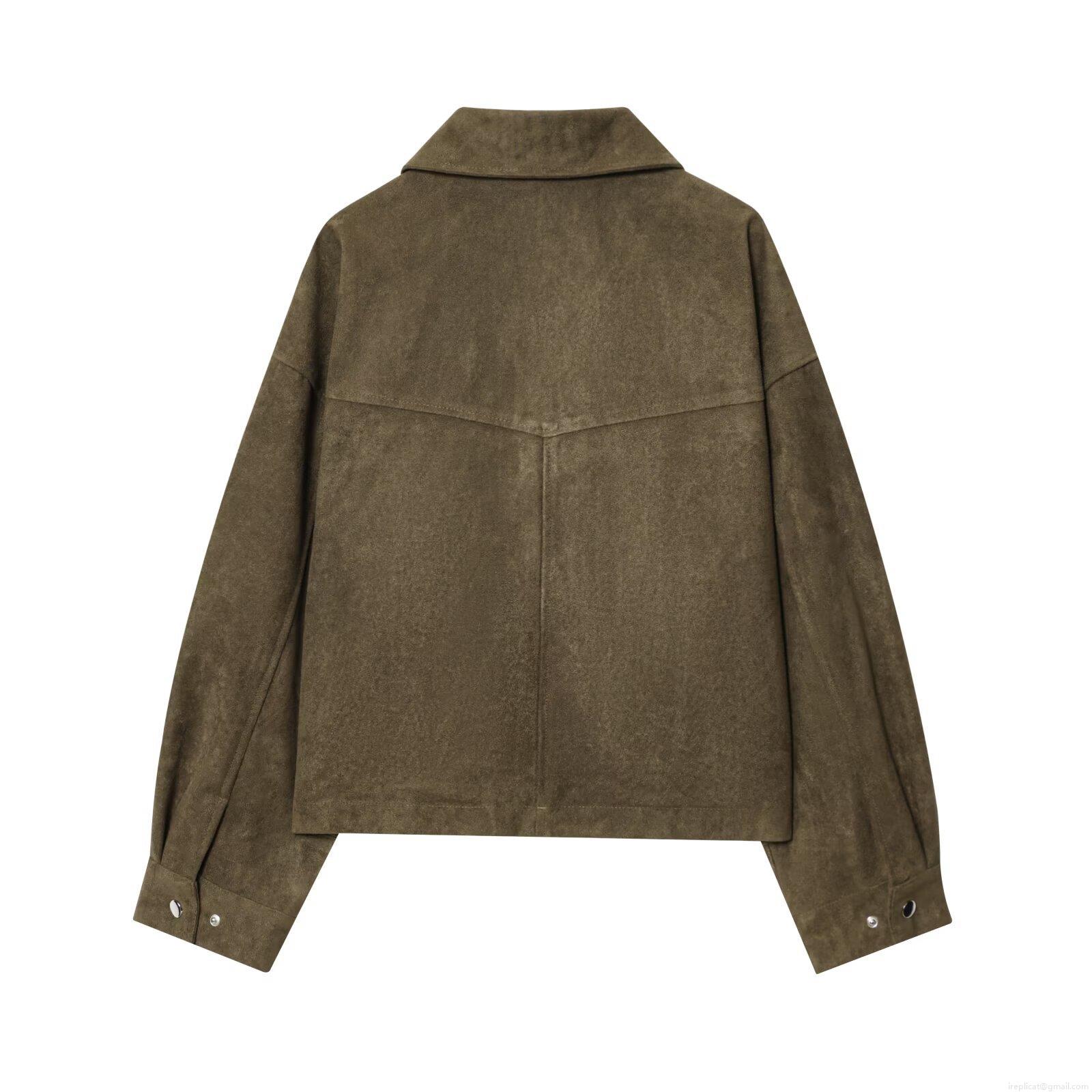 Women's Faux Suede Jacket Lapel Collar Utility Pocket Bomber Outerwear Loose Fit Streetwear Polyester Coat With Metal Buttons For Autumn