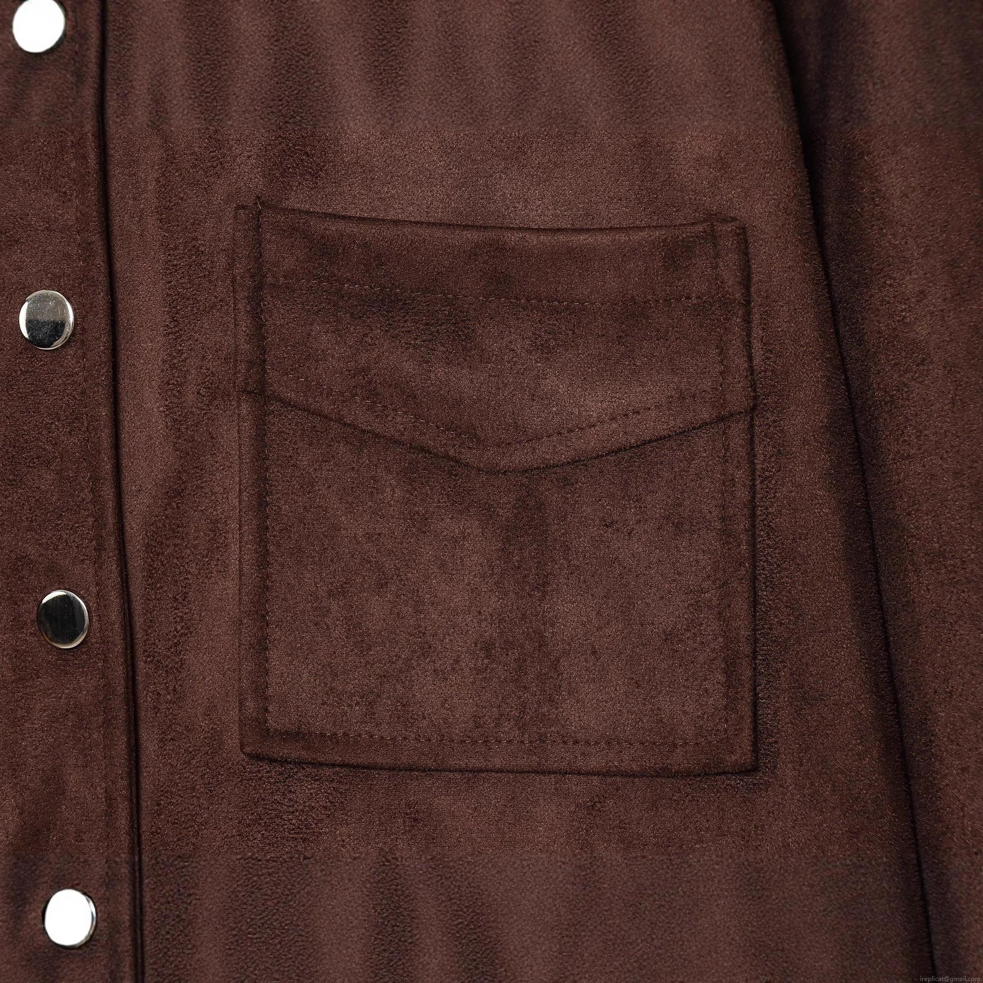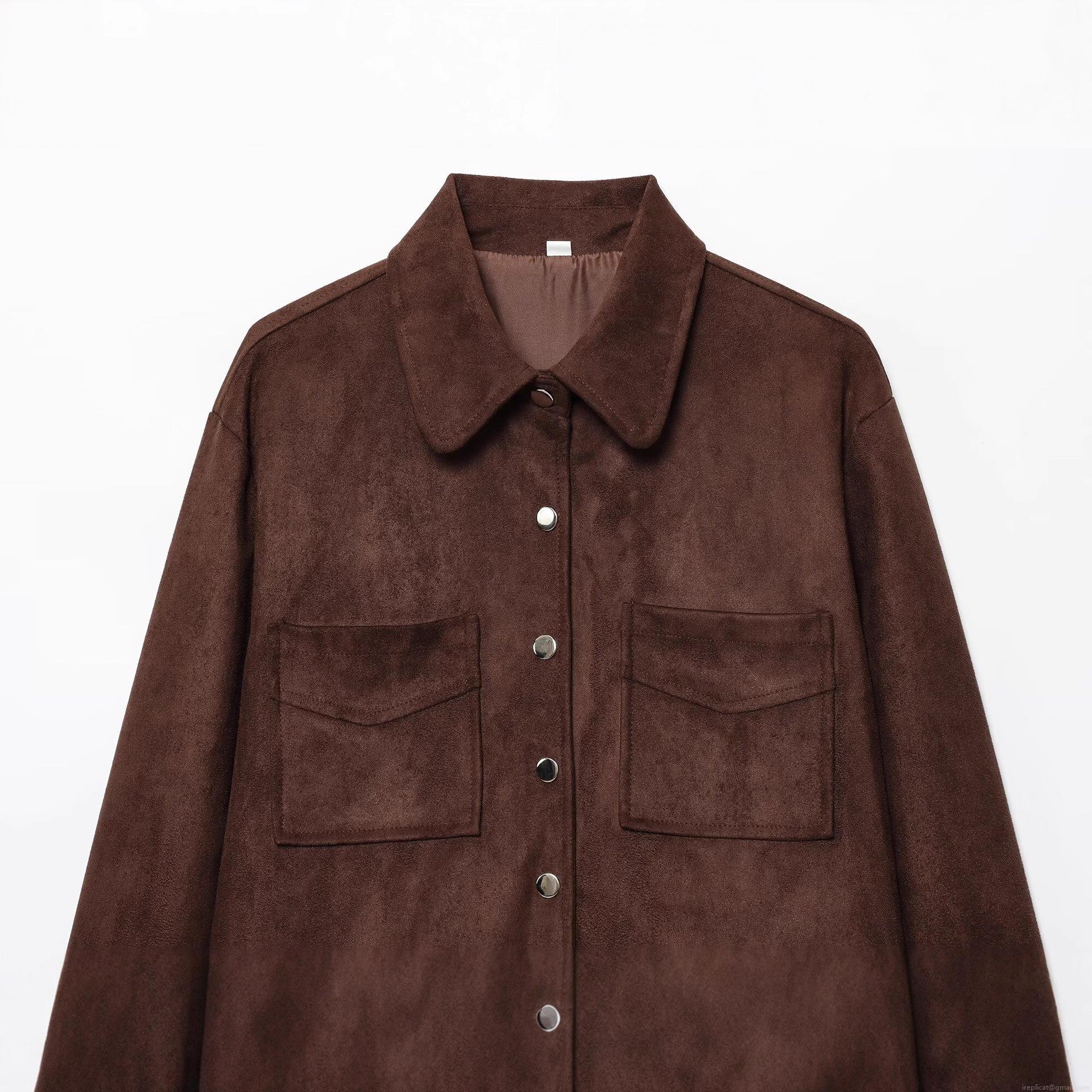 • Women's Faux Suede Jacket Lapel Long Sleeve Loose Casual Streetwear Coat With Flap Pockets Metal Buttons Solid Color Autumn Outwear For Women
