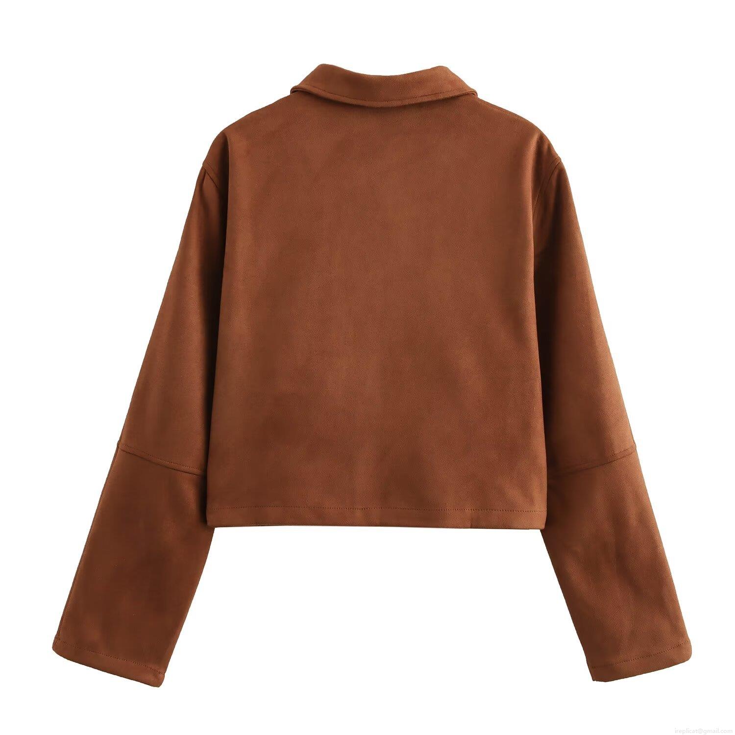 • Women's Faux Suede Jacket Lapel Long Sleeve Solid Color Zipper Short Coat Streetwear Fashion Outerwear For Autumn Winter Ladies