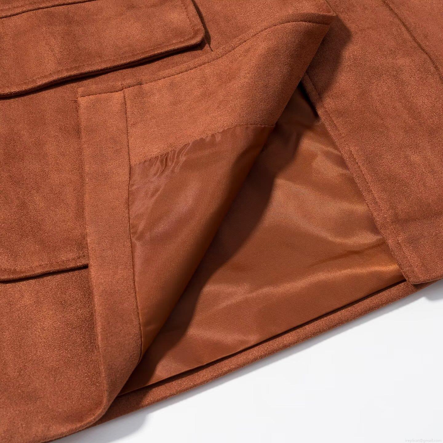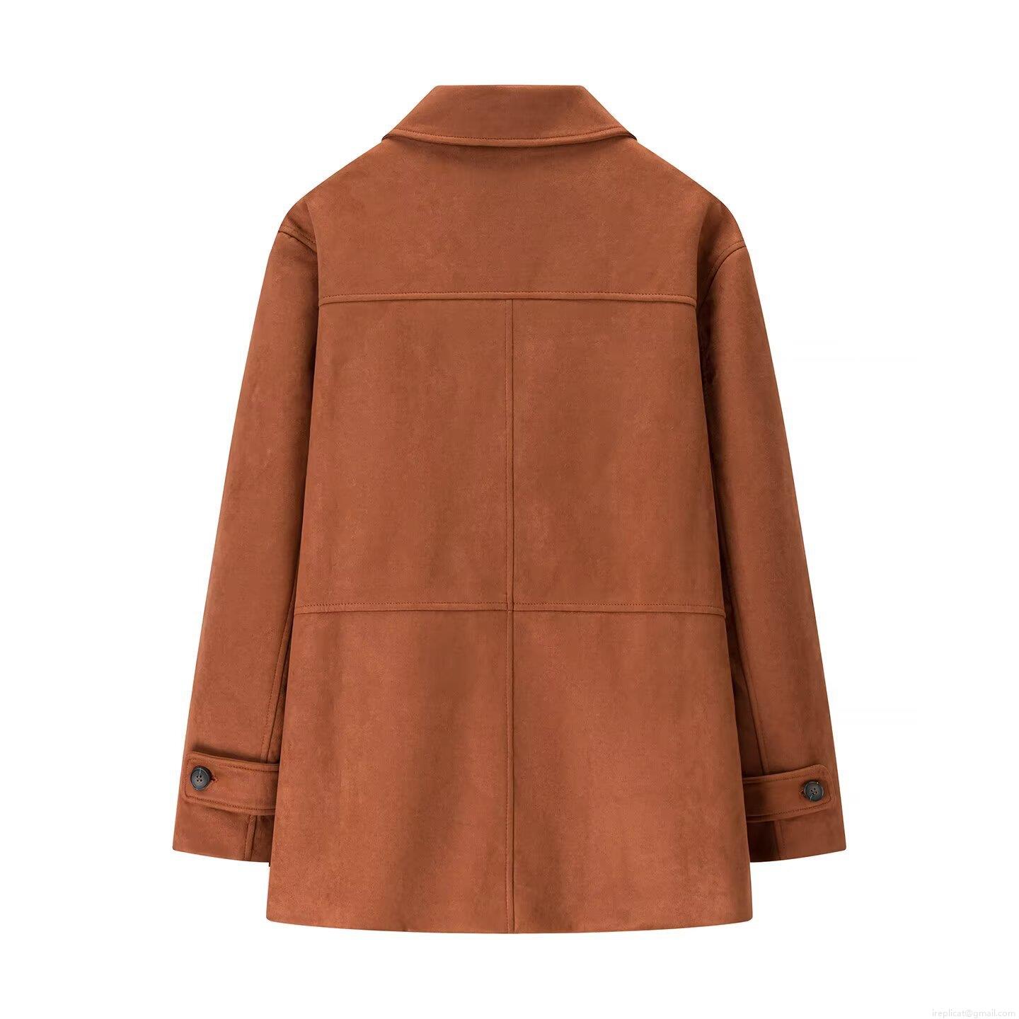 Women's Faux Suede Jacket Mid Length Turn-down Collar Single Breasted Solid Color Casual Long Sleeve Outwear Coat With Pockets Fashion Streetwear