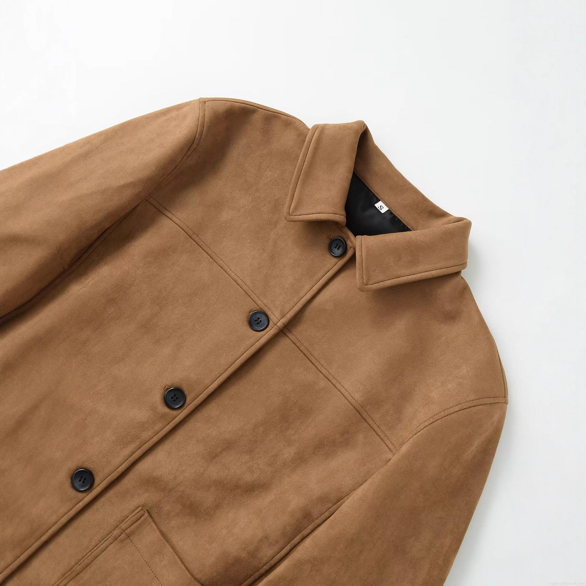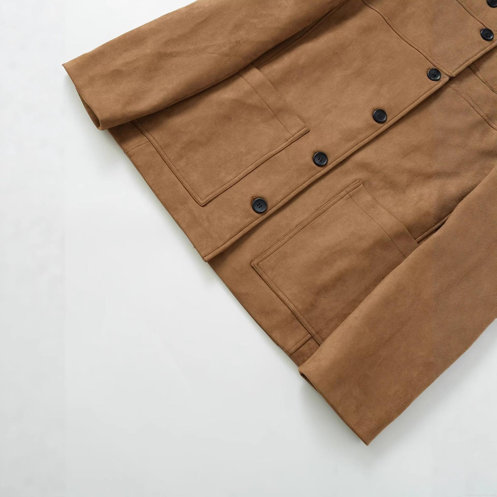 • Women's Faux Suede Jacket Solid Color Lapel Single Breasted Coat With Pockets Casual Streetwear Loose Outerwear For Women