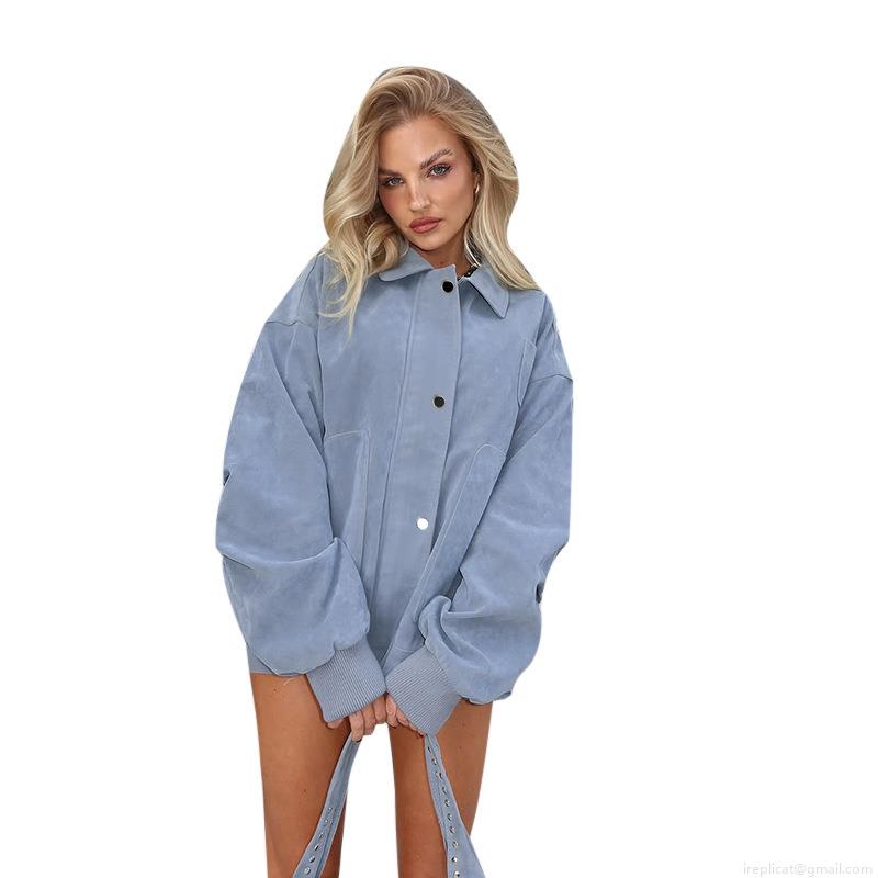 • Women's Faux Suede Jacket Solid Color Polo Collar Button Down Loose Fit Long Sleeve Outerwear With Ribbed Cuffs Casual Autumn Winter Jacket For Women