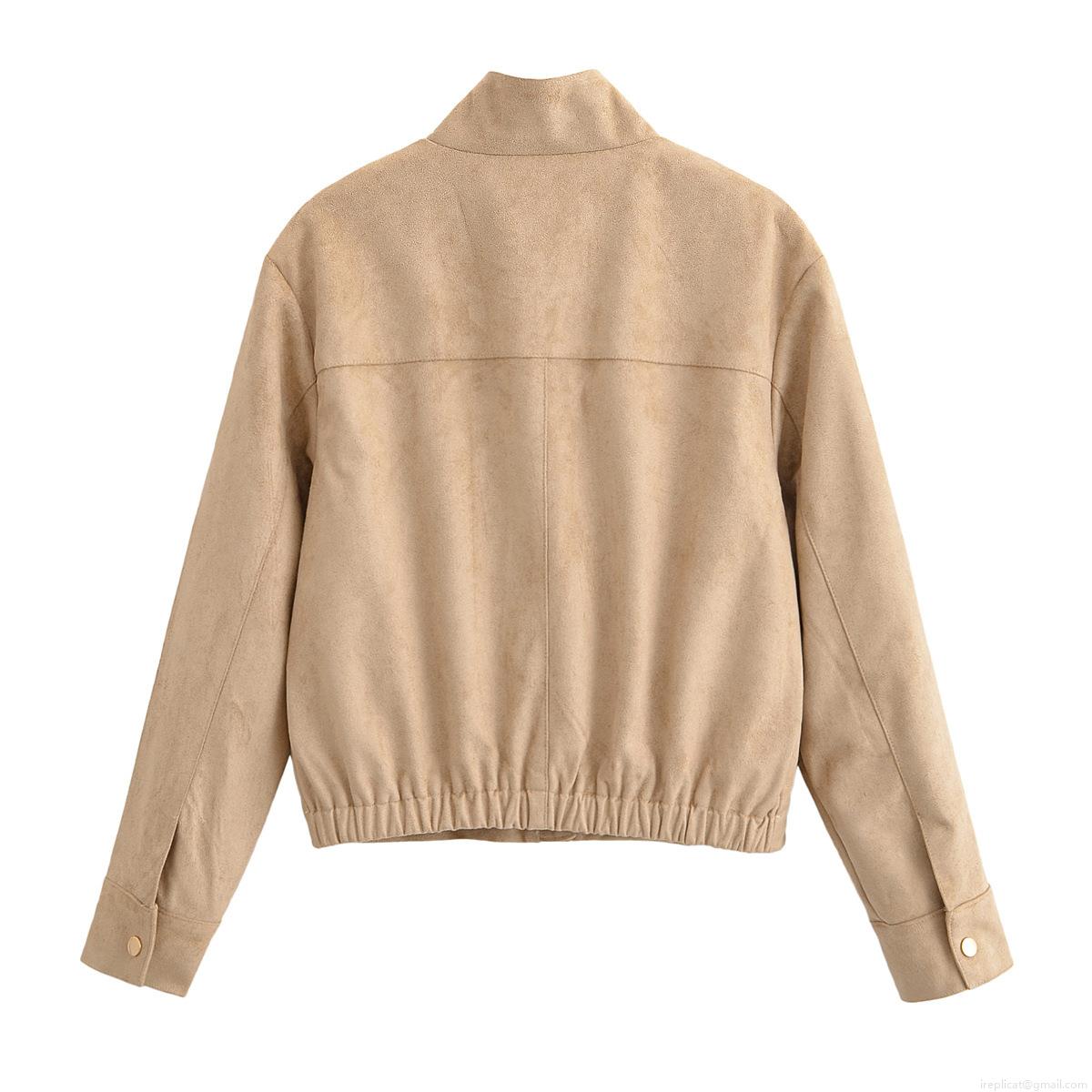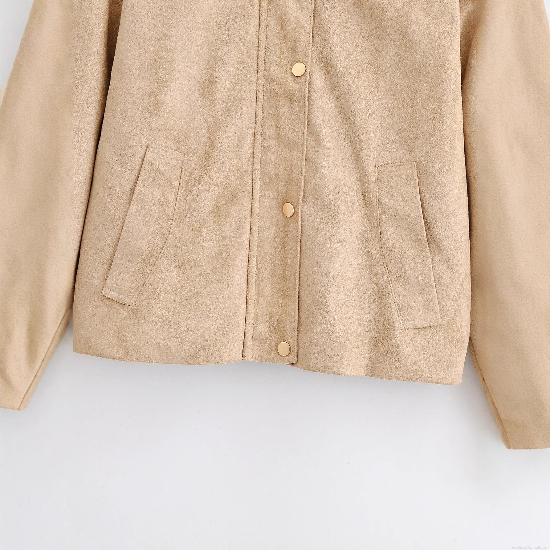 • Women's Faux Suede Jacket Stand Collar Single Breasted Snap Button Pocket Utility Coat Casual Loose Long Sleeve Streetwear Outerwear For Women