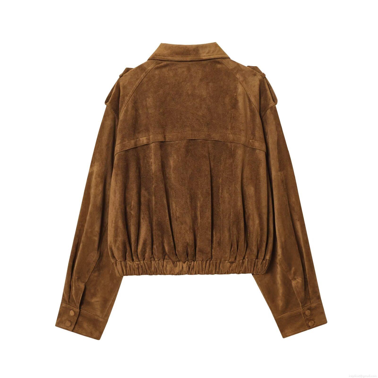 • Women's Faux Suede Jacket Vintage European Style Lapel Zipper Short Coat With Epaulettes Workwear Streetwear Outerwear For Autumn Winter