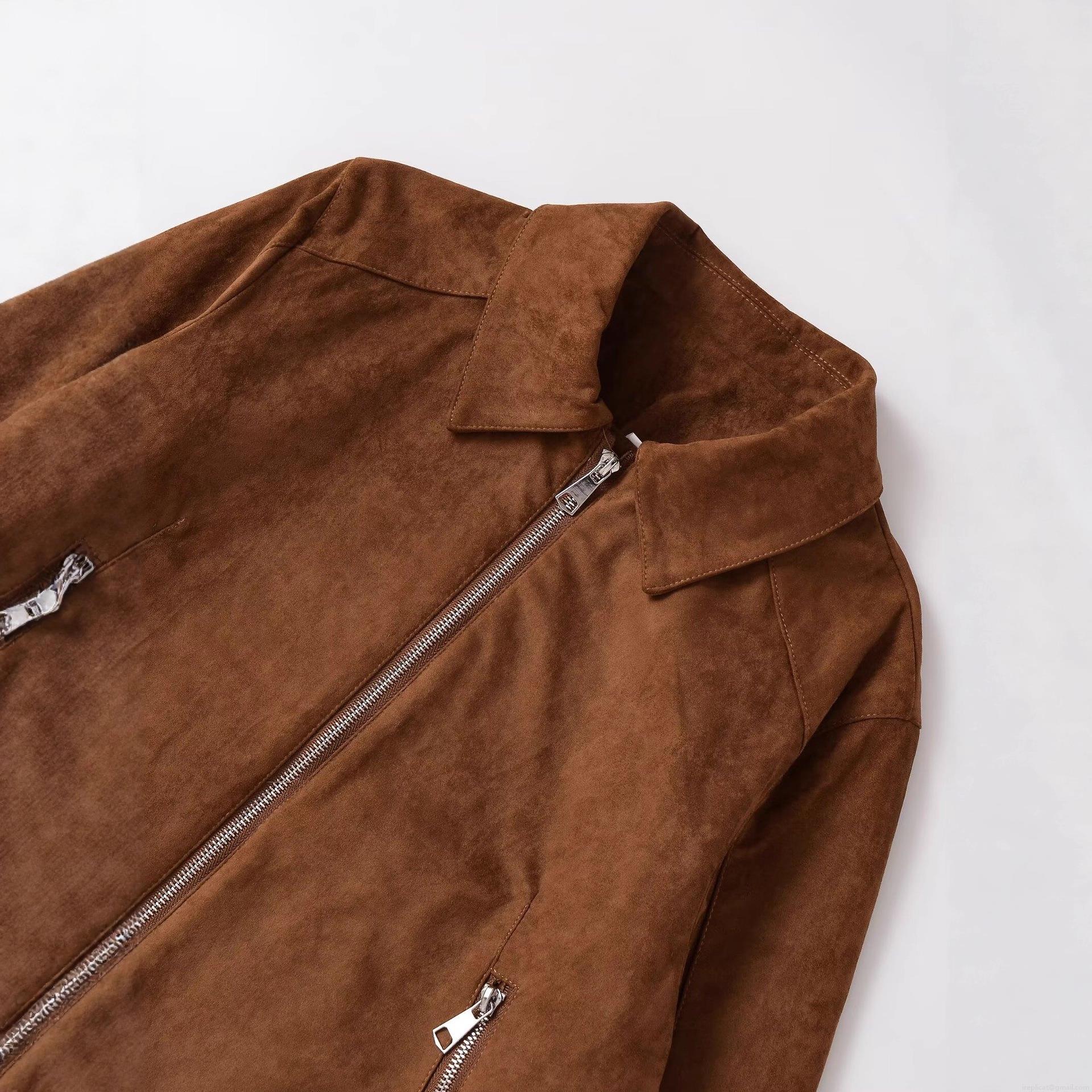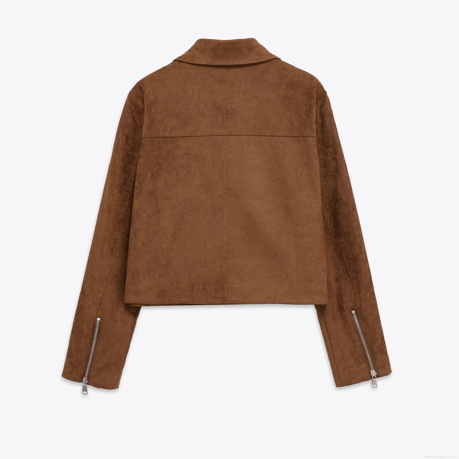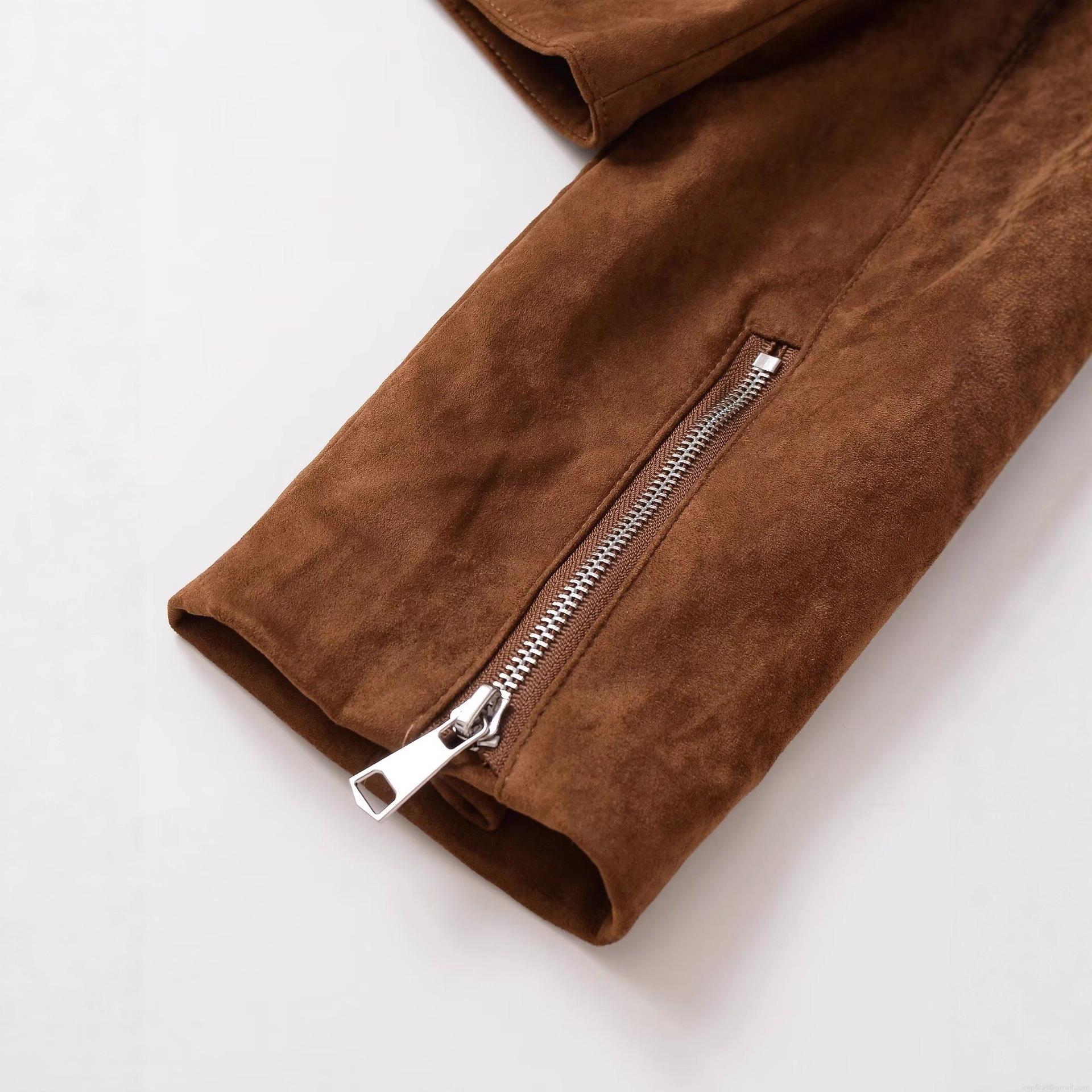 • Women's Faux Suede Jacket Zipper Closure Lapel Collar Long Sleeve Solid Color Casual Streetwear Short Coat Outerwear For Women Autumn Winter