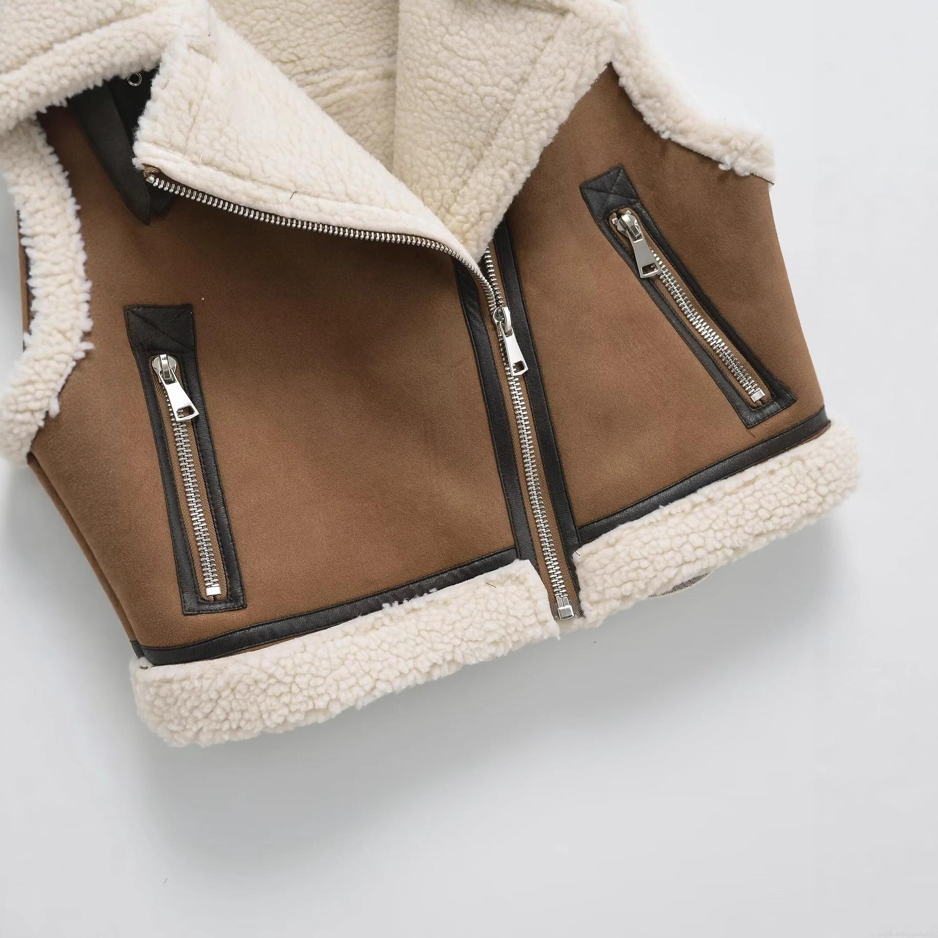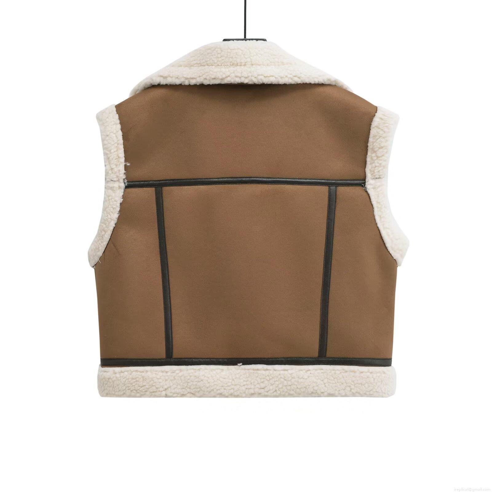 • Women's Faux Suede Lamb Wool Vest Thickened Warm Faux Leather Integrated Sleeveless Jacket For Winter Autumn Casual Retro Streetwear Outerwear