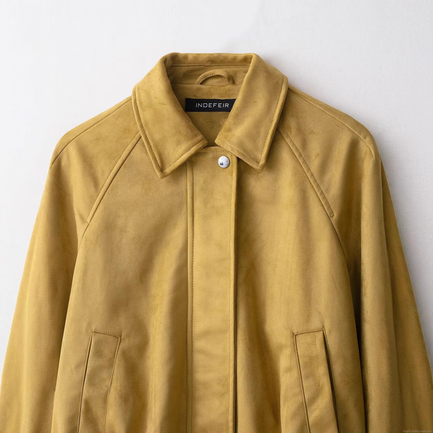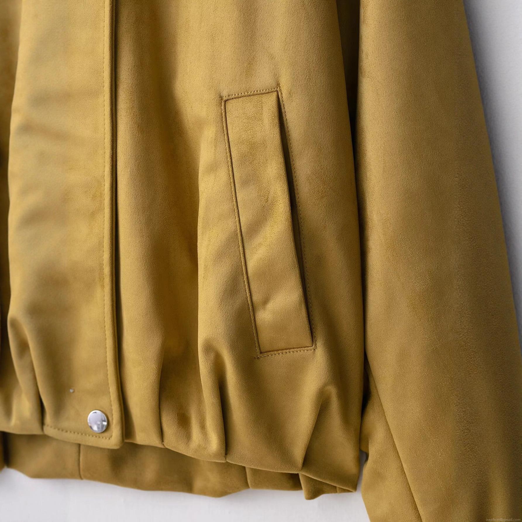 • Women's Faux Suede Lapel Collar Long Sleeve Zip Up Jacket Mustard Yellow Casual Loose Fit Streetwear Outerwear For Autumn Winter