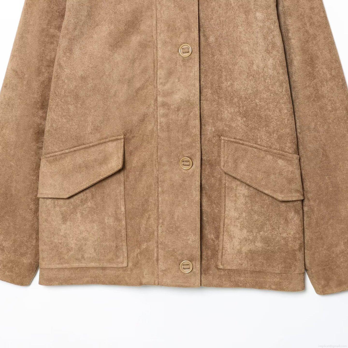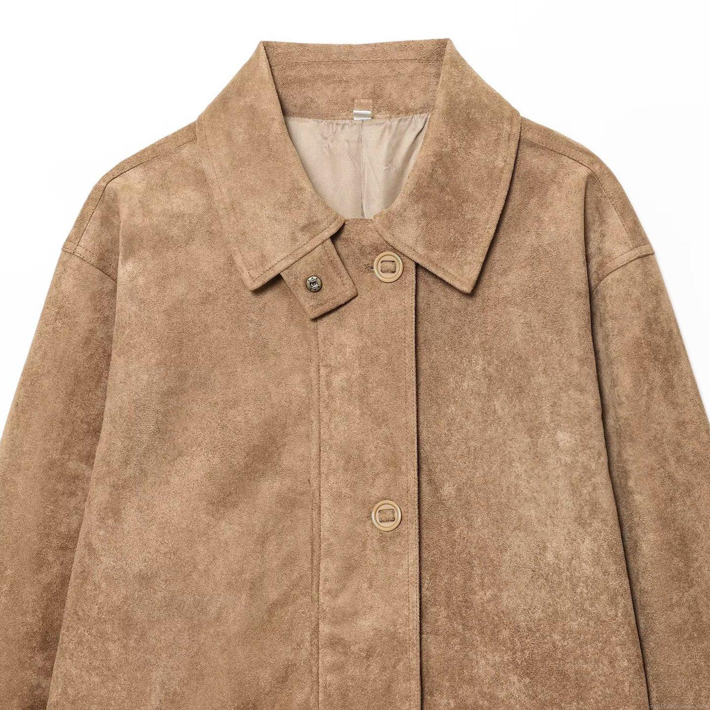 • Women's Faux Suede Leather Jacket Lapel Single-Breasted Flap Pockets Casual Autumn Long Sleeve Outerwear Minimalist Loose Fit Retro Style Coat For Ladies