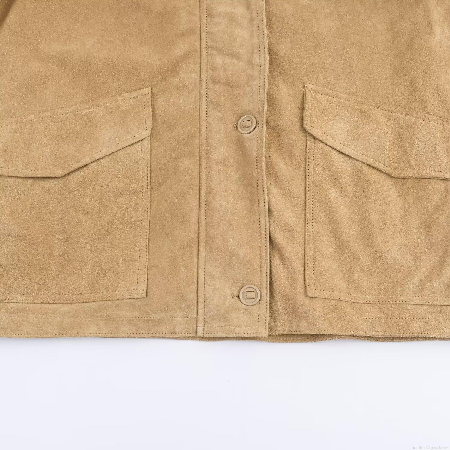 Women's Faux Suede Leather Jacket Retro Lapel Single Breasted Short Coat With Pockets Casual Khaki Outerwear Fashion Elegant Lady Spring Autumn Clothing