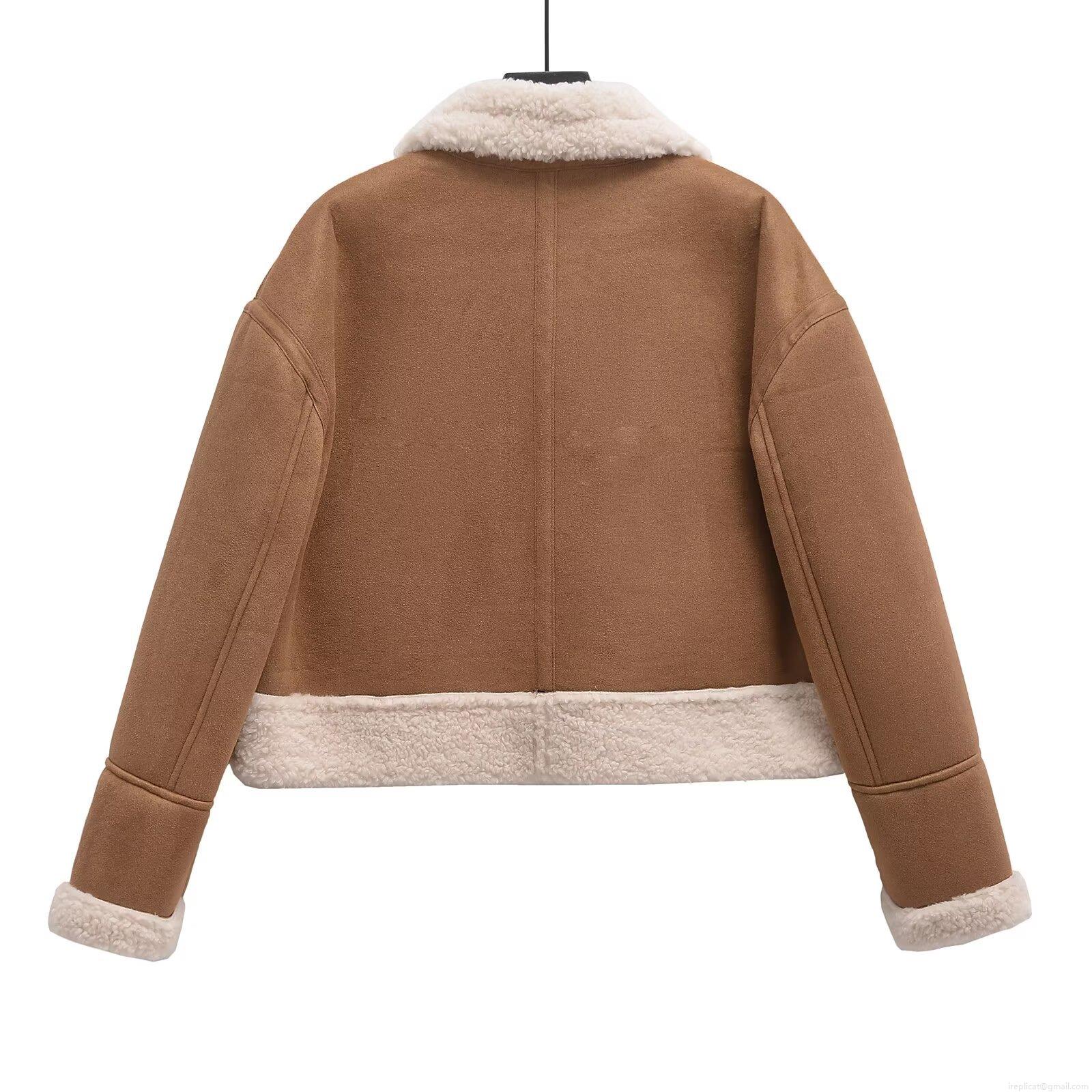 • Women's Faux Suede Leather Jacket With Faux Fur Lining Sherpa Aviator Jacket Short Warm Winter Coat Lapel Collar Zip Up Outwear For Women