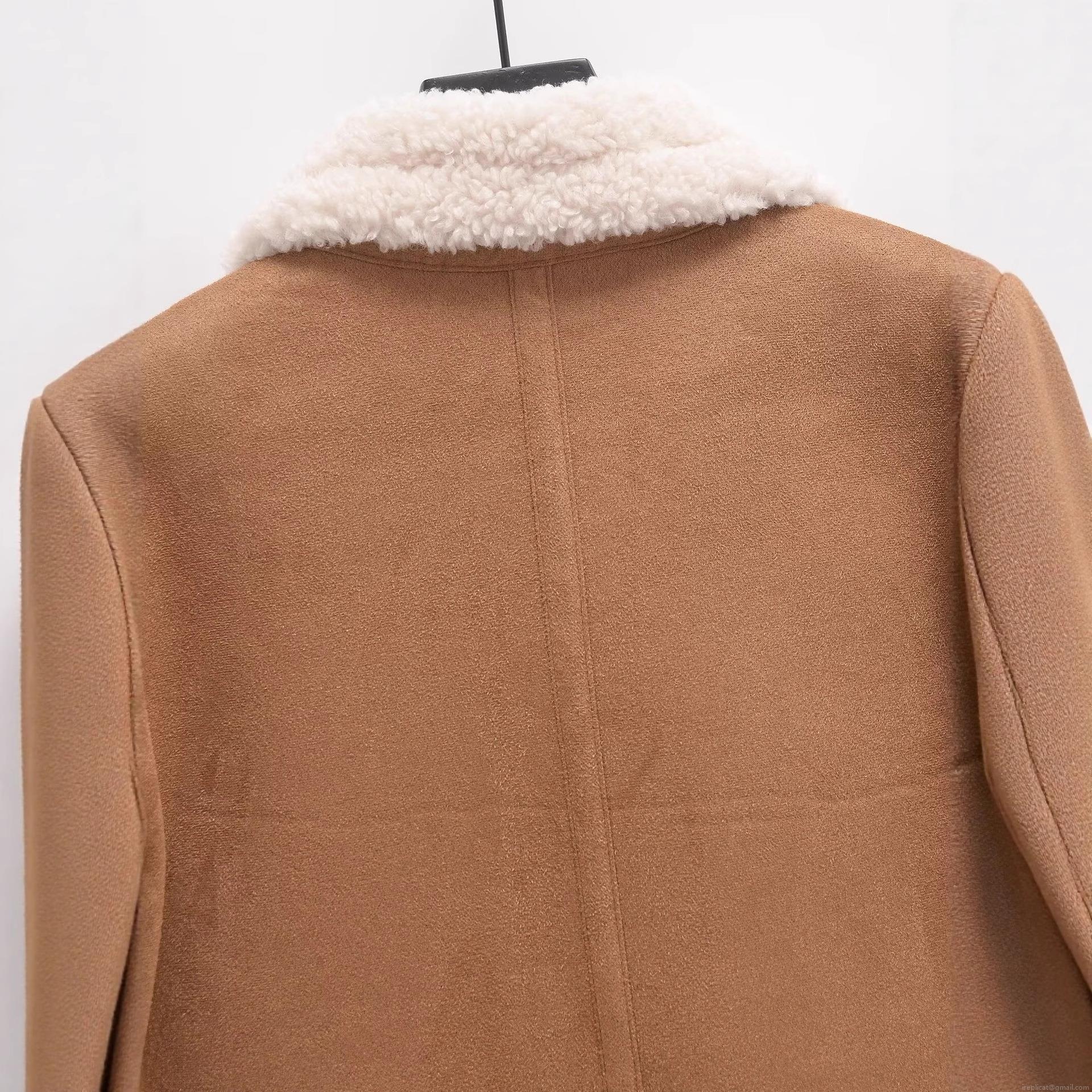 Women's Faux Suede Leather Jacket With Faux Fur Lining Sherpa Aviator Jacket Short Warm Winter Coat Lapel Collar Zip Up Outwear For Women