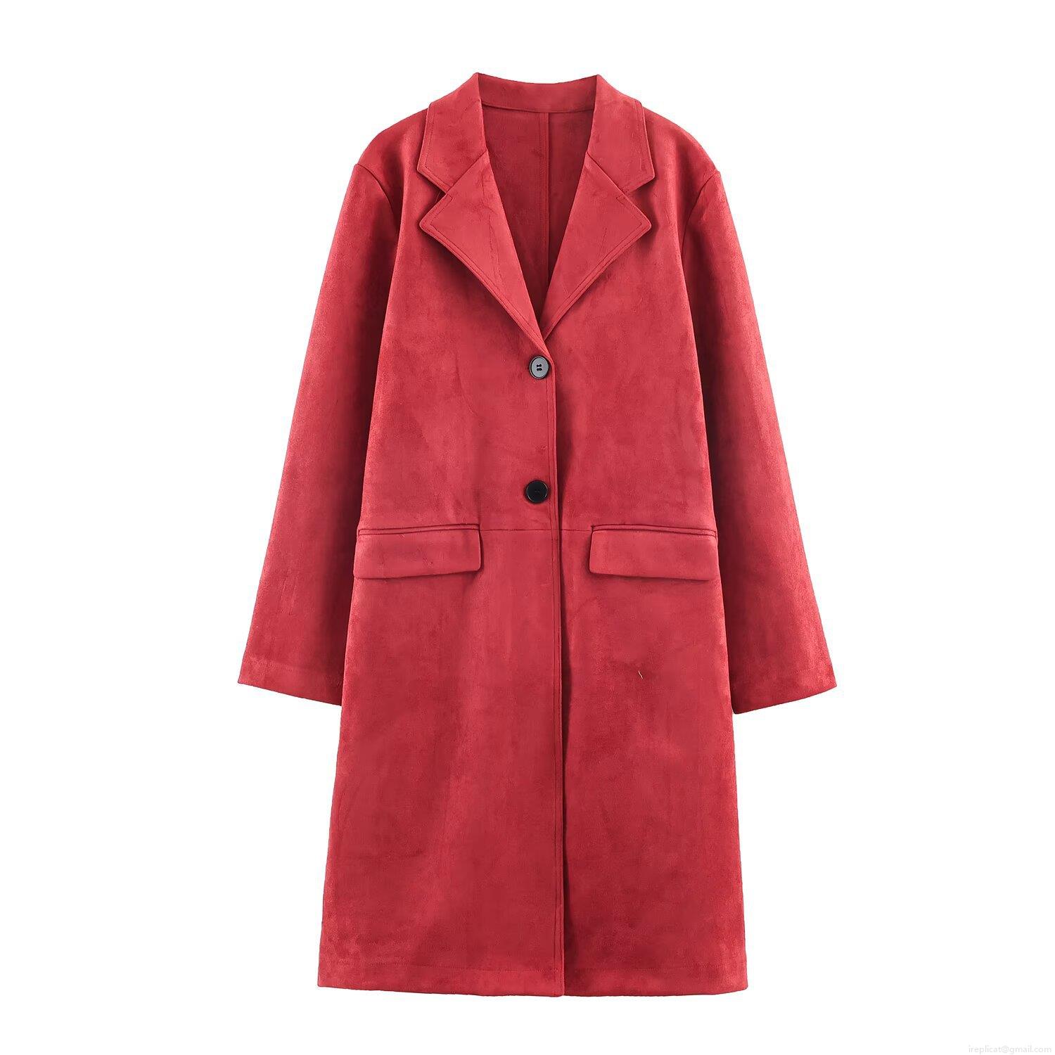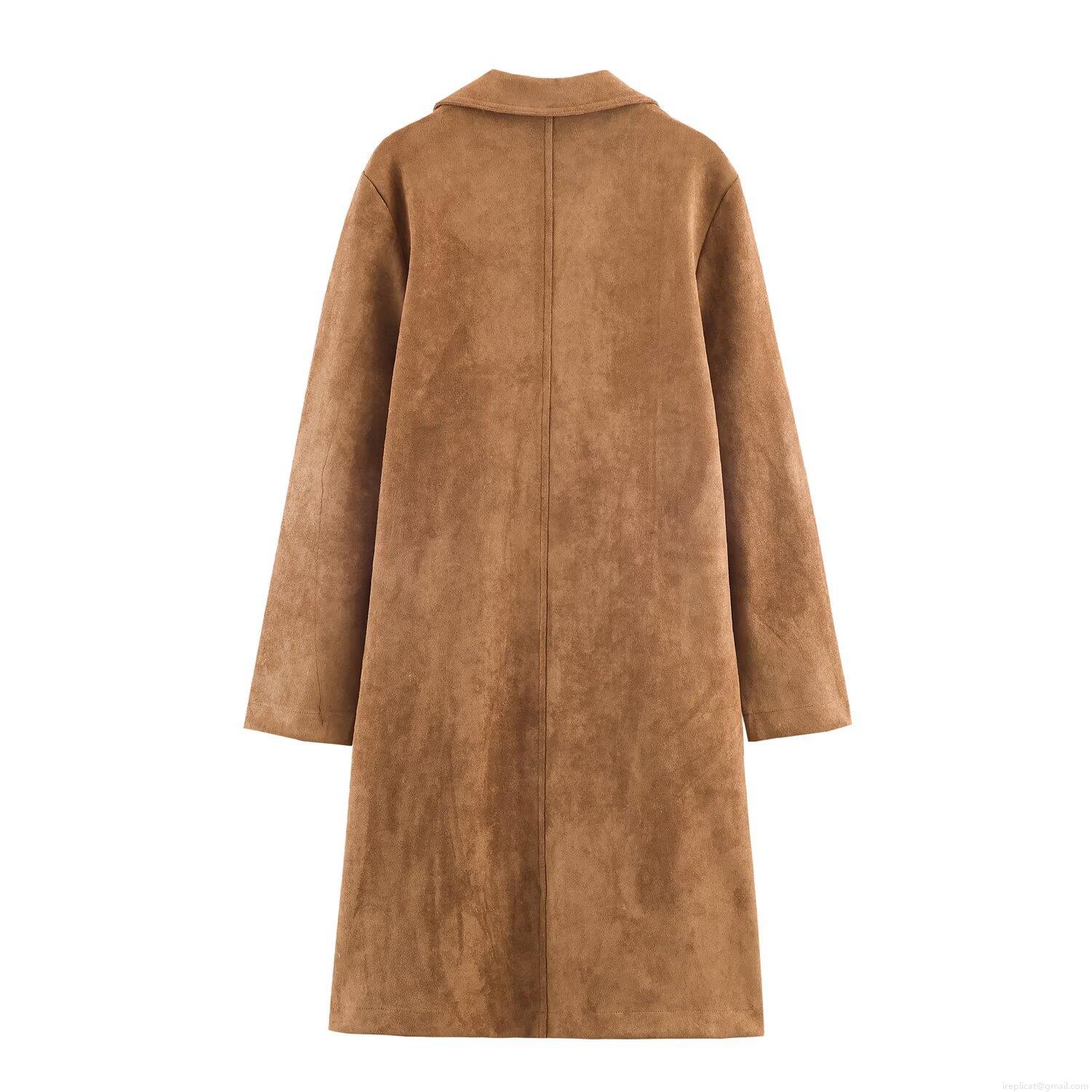 • Women's Faux Suede Long Sleeve Jacket Lapel Single Breasted Solid Color Outerwear Trench Coat For Fall Winter Elegant Lady Casual Top