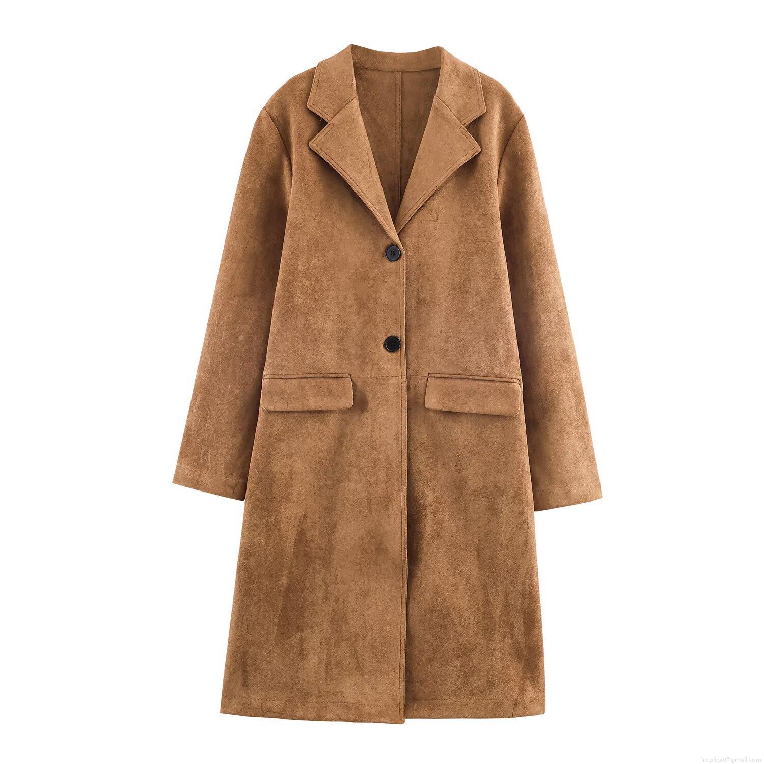 Women's Faux Suede Long Sleeve Jacket Lapel Single Breasted Solid Color Outerwear Trench Coat For Fall Winter Elegant Lady Casual Top