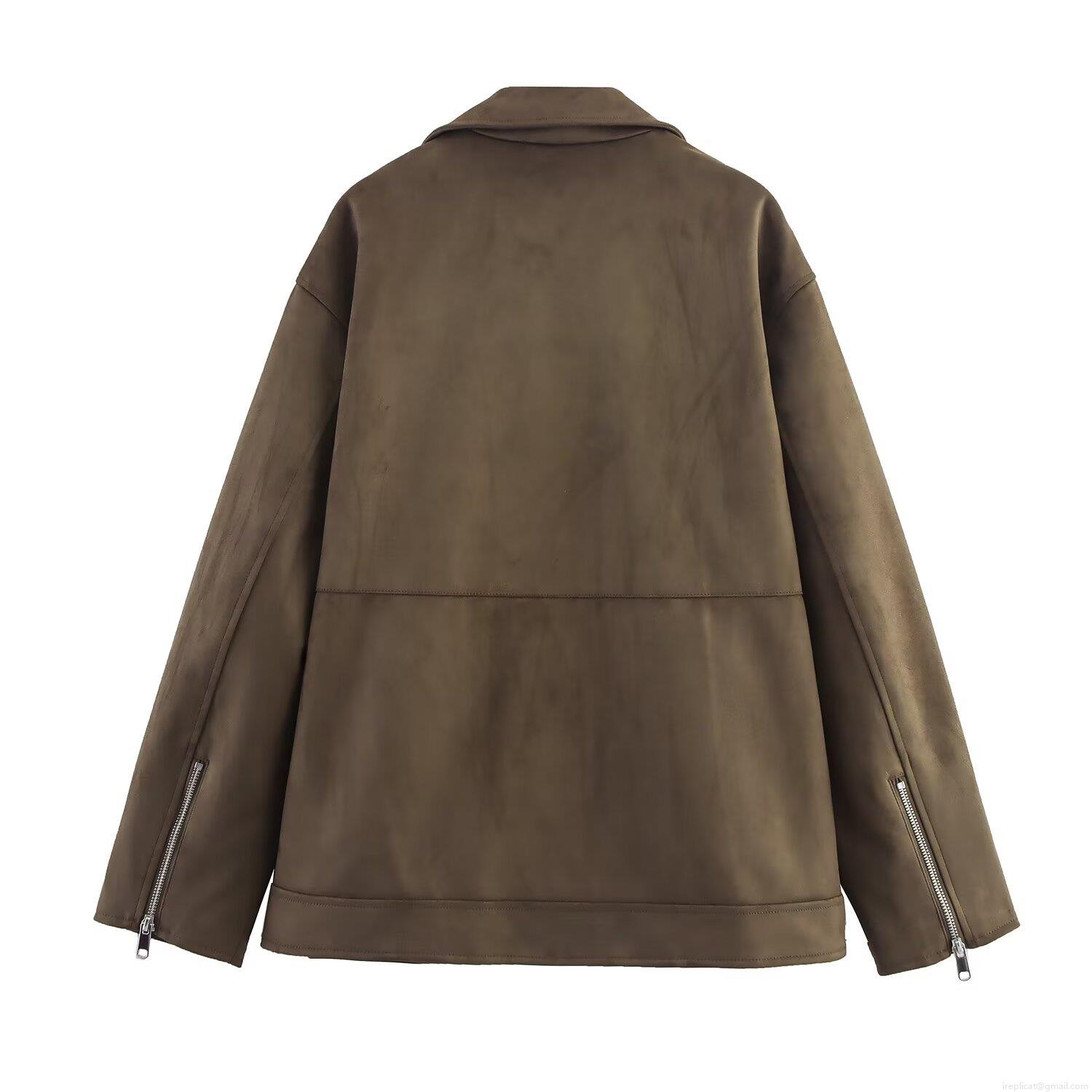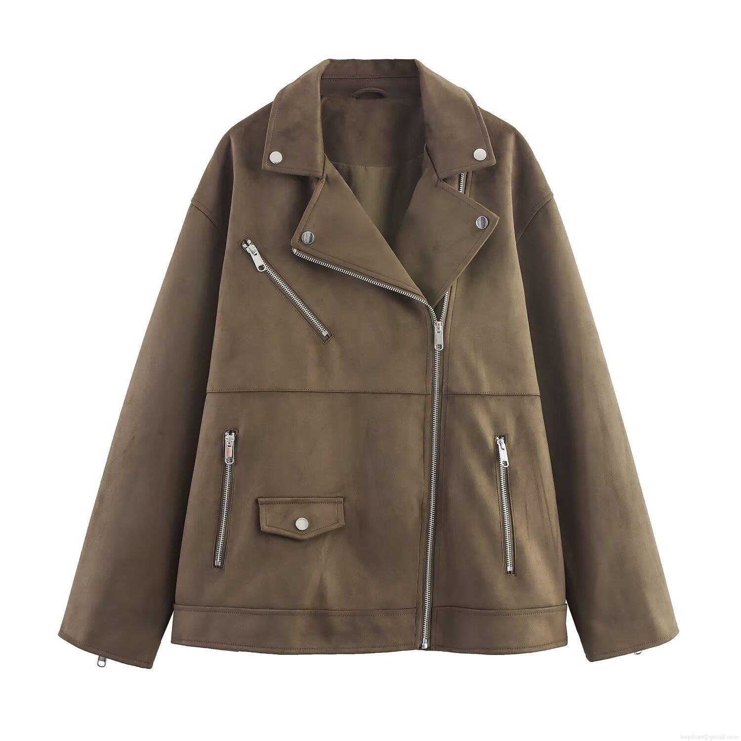 Women's Faux Suede Moto Jacket Streetwear Lapel Zipper Casual Long Sleeve Mid-Length Outerwear Coat Spring Autumn Fashion Outwear