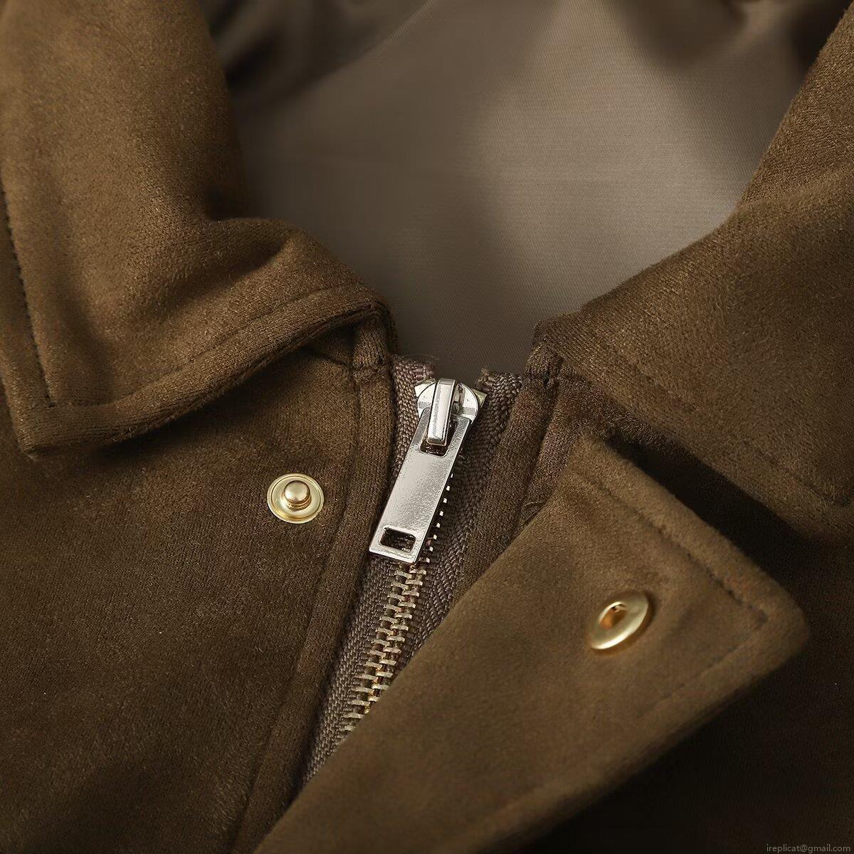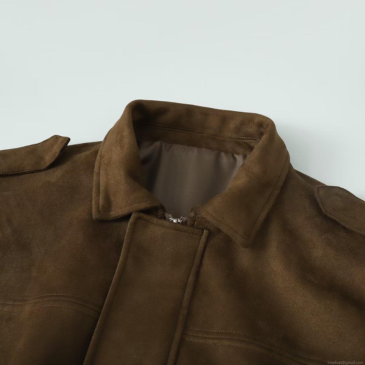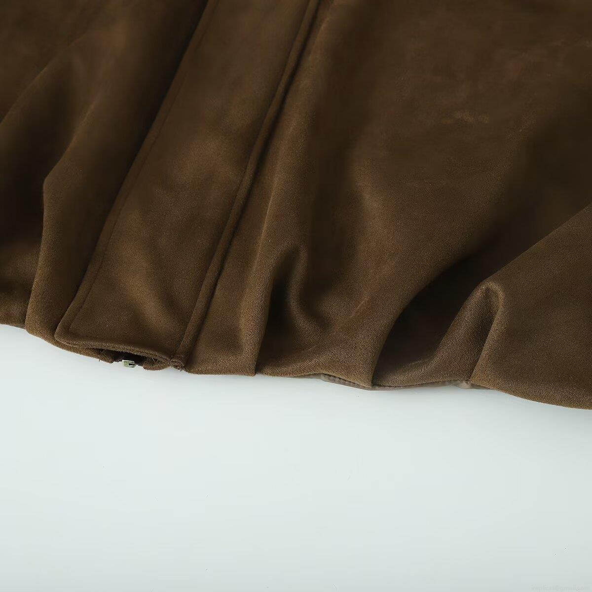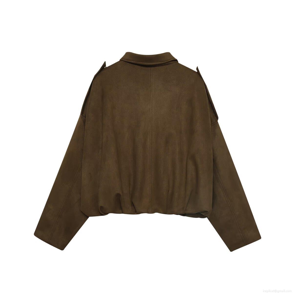 • Women's Faux Suede Polyester Bomber Jacket Casual Loose Outerwear With Shoulder Straps Retro Lapel Zipper Up Short Coat For Autumn Winter Ladies Daily Fashion