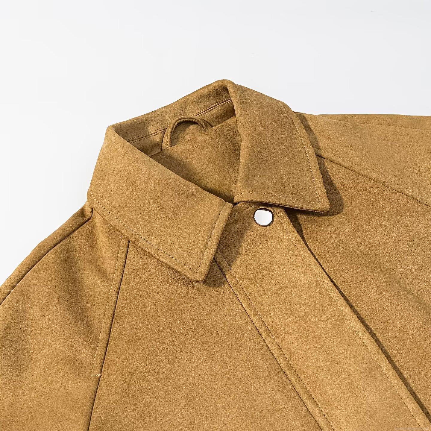 Women's Faux Suede Polyester Bomber Jacket Solid Color Short Coat With Metal Buttons Zipper Streetwear Casual Spring Autumn Ladies Outerwear