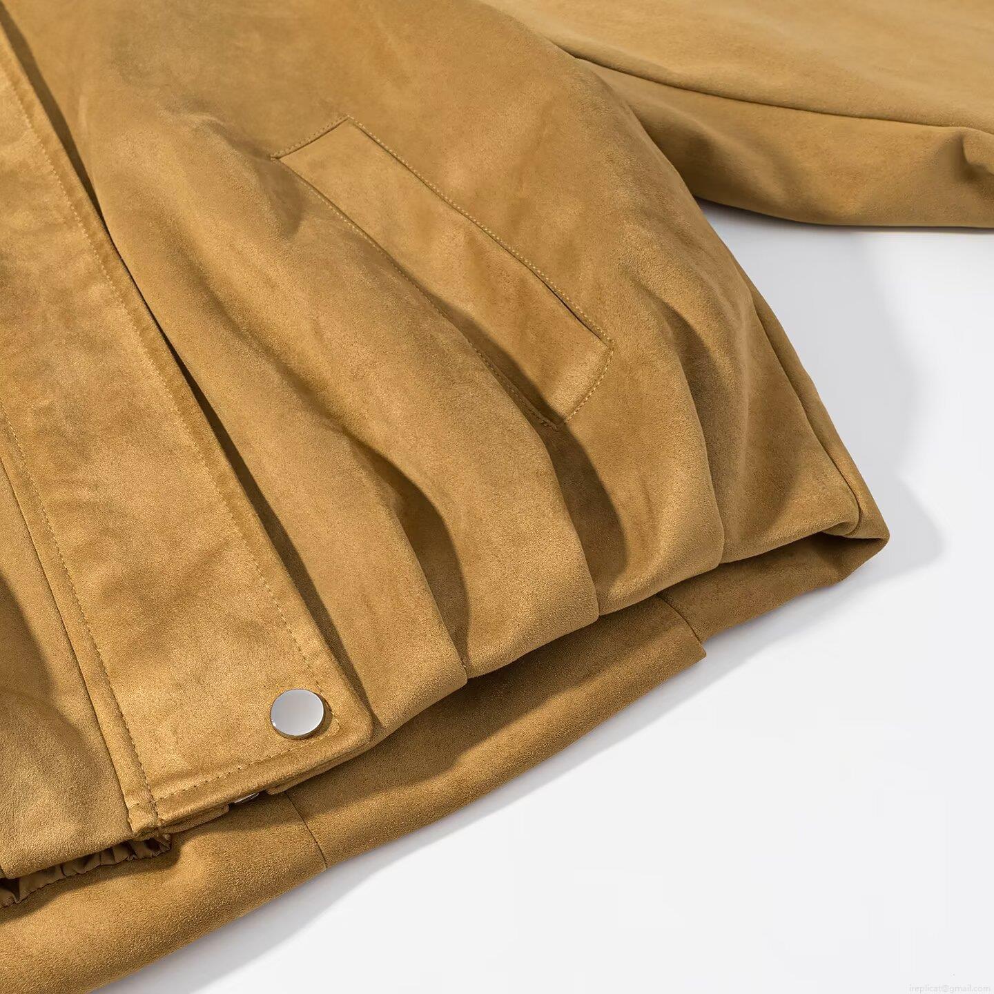 • Women's Faux Suede Polyester Bomber Jacket Solid Color Short Coat With Metal Buttons Zipper Streetwear Casual Spring Autumn Ladies Outerwear