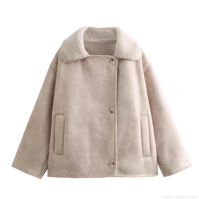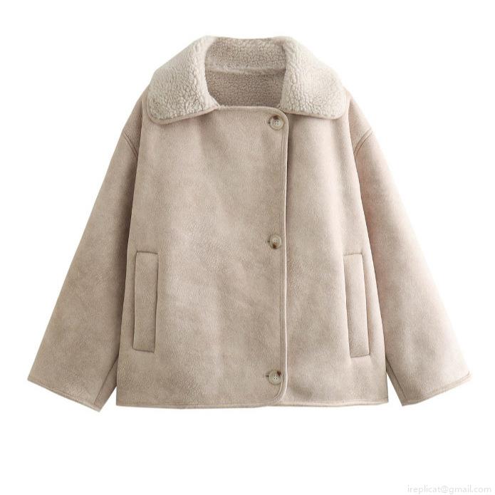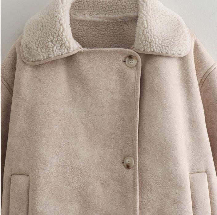 • Women's Faux Suede Shearling Jacket Warm Fleece Lined Faux Leather Suede Thickened Winter Outwear With Pockets Casual Streetwear Autumn Winter Lapel Button Down Loose Fit Ladies Jacket