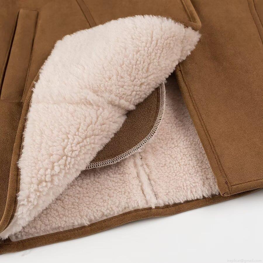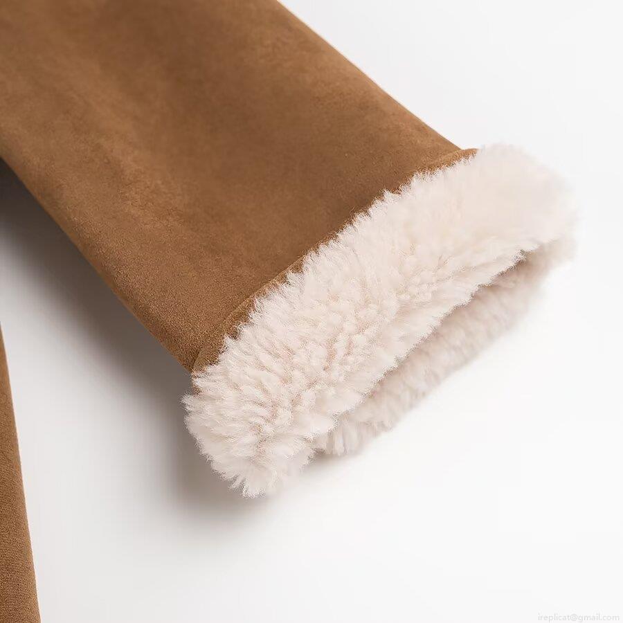 • Women's Faux Suede Shearling Jacket Warm Mid-Length Fleece Lined Lapel Coat Loose Casual Retro Outerwear For Autumn Winter Women