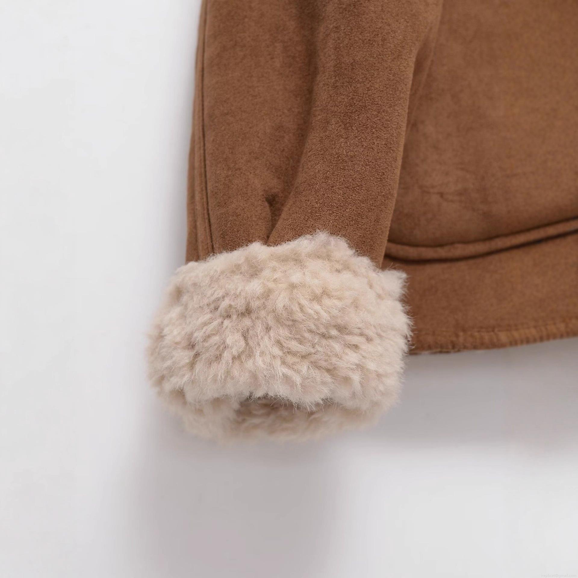 Women's Faux Suede Shearling Reversible Jacket Stand Collar Single Breasted Loose Fleece Coat With Pockets Autumn Winter Warm Outwear Street Style
