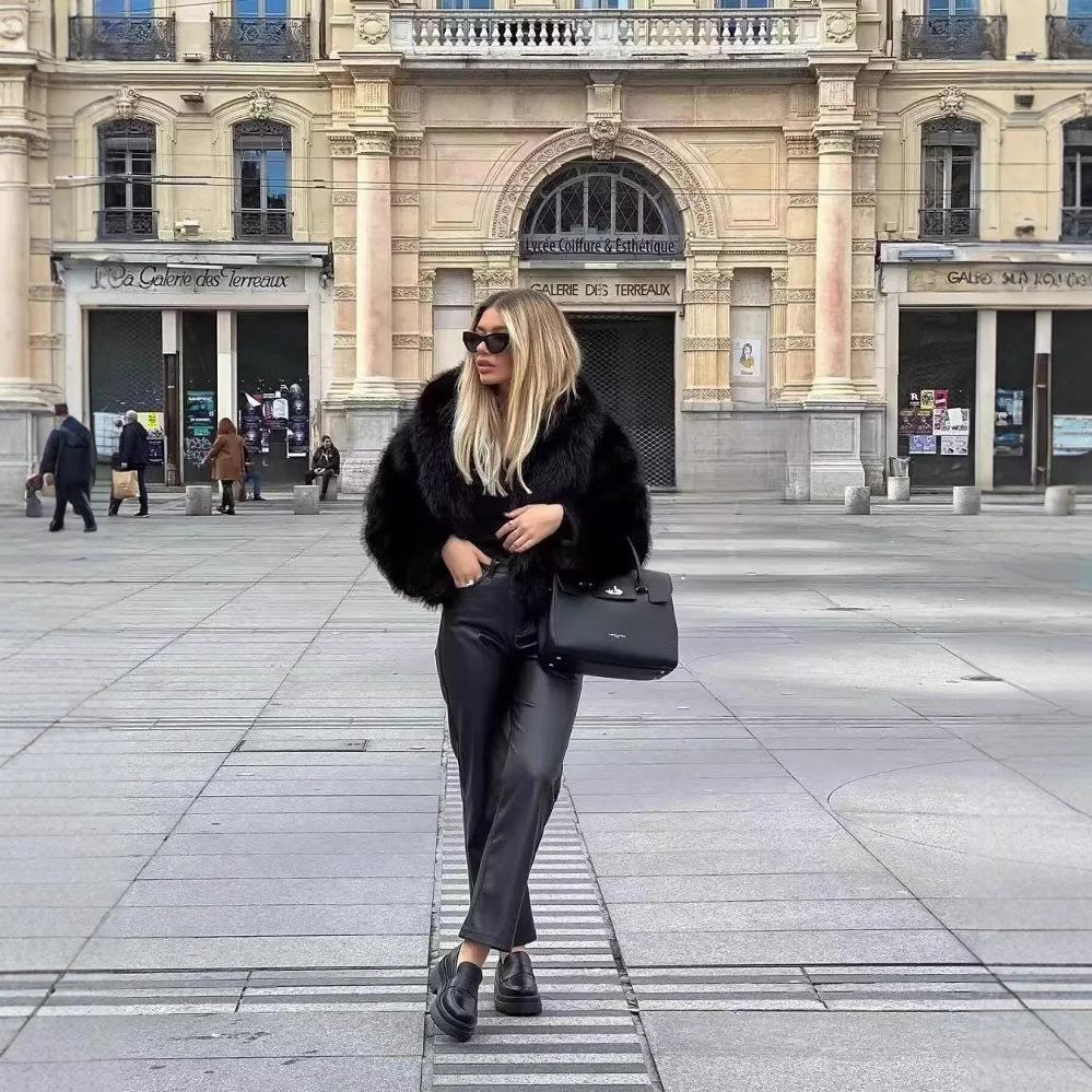 • Women's Fluffy Faux Fur Jacket Winter Warm Lapel Long Sleeve Oversized Shaggy Coat 100% Polyester Leopard Solid Color Fashion Streetwear Outwear