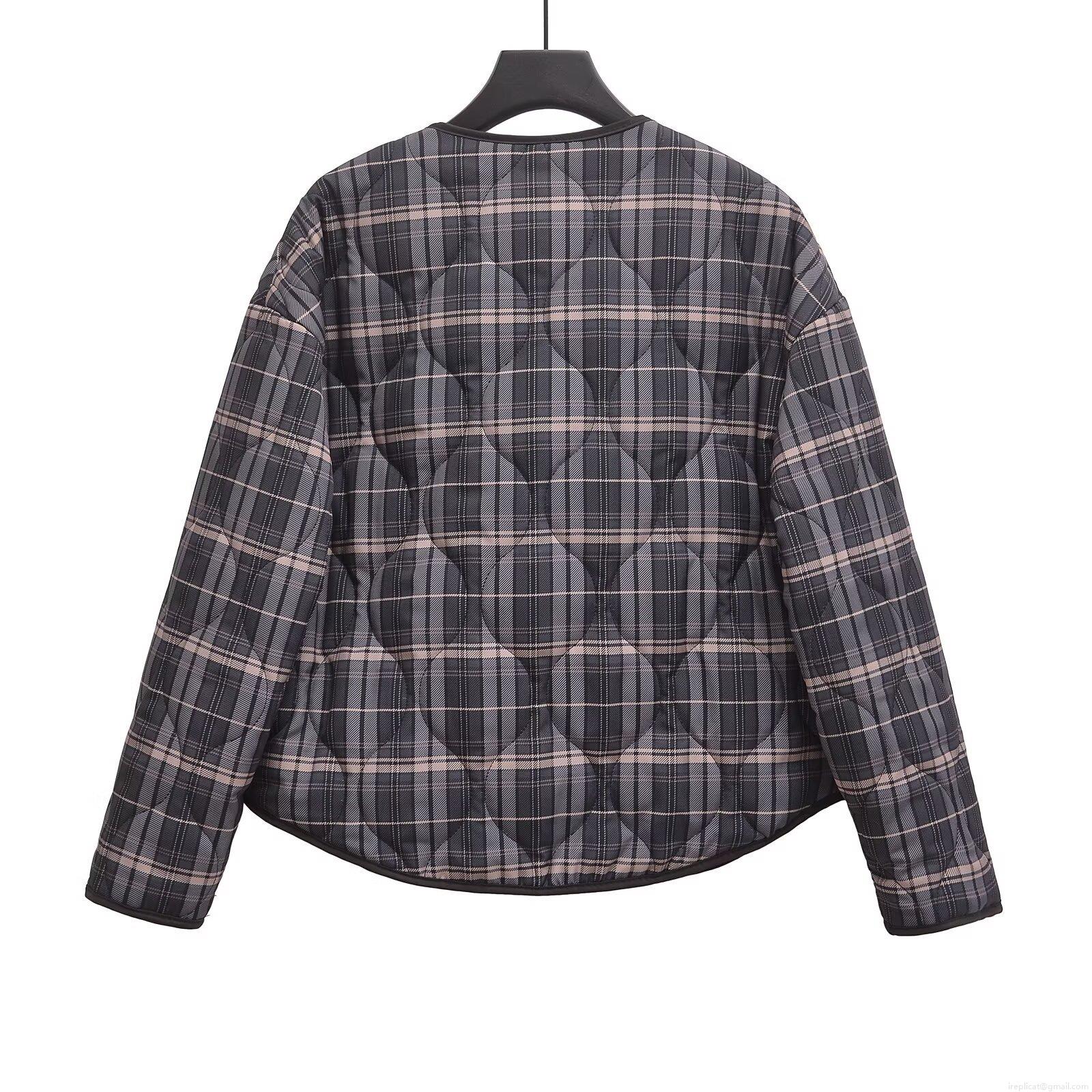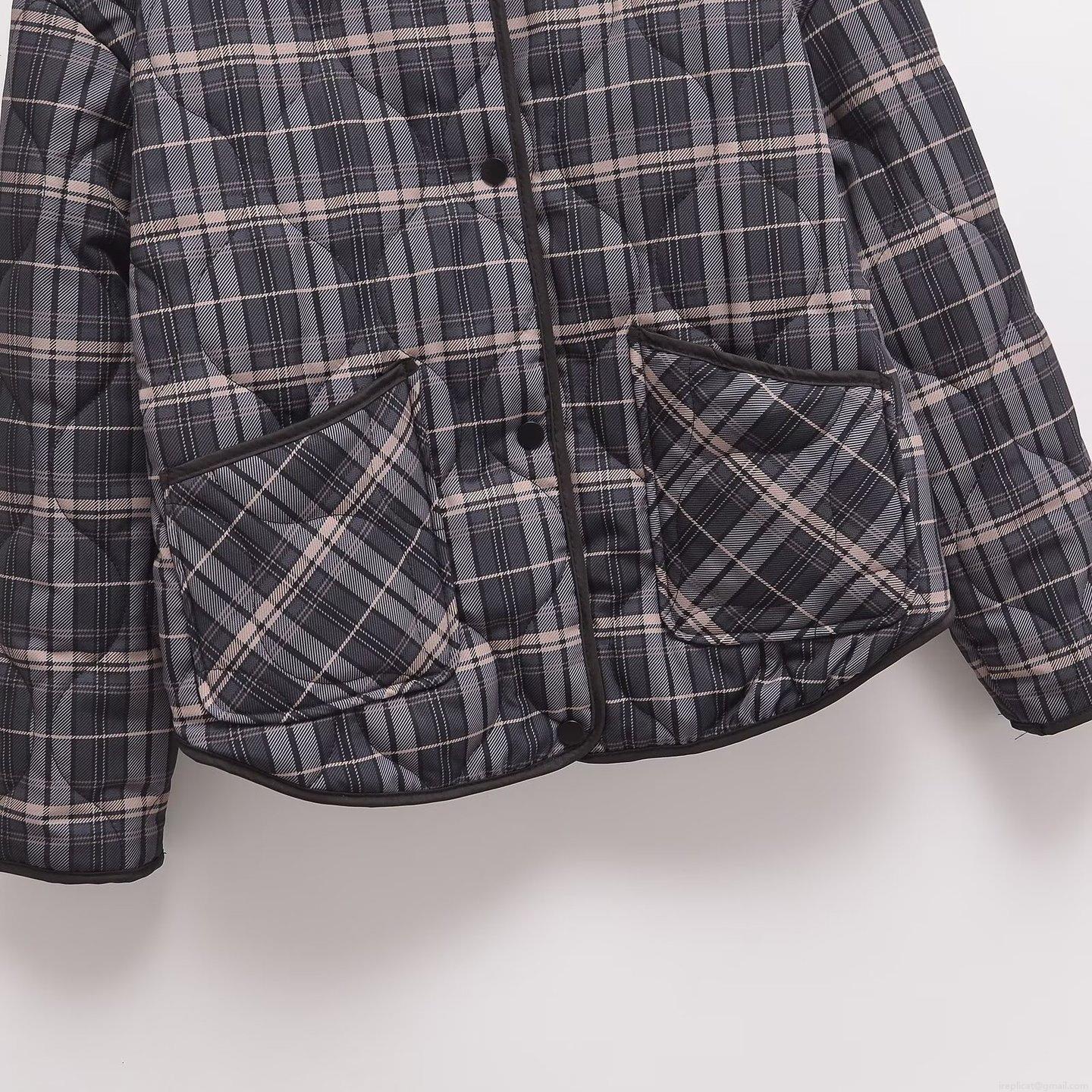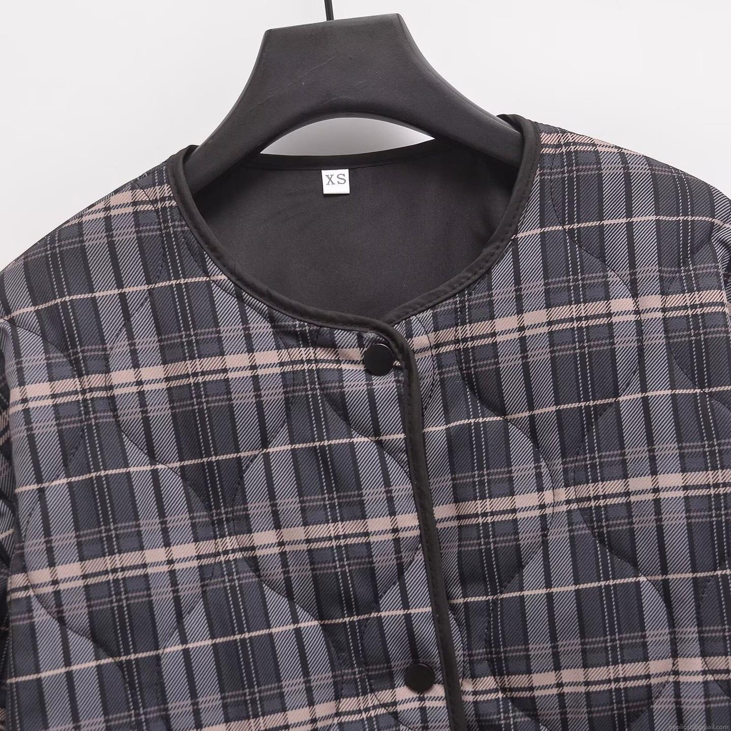 • Women's French Retro Plaid Quilted Jacket Fashion Round Neck Long Sleeve Single Breasted Polyester Padded Coat For Winter Casual Streetwear