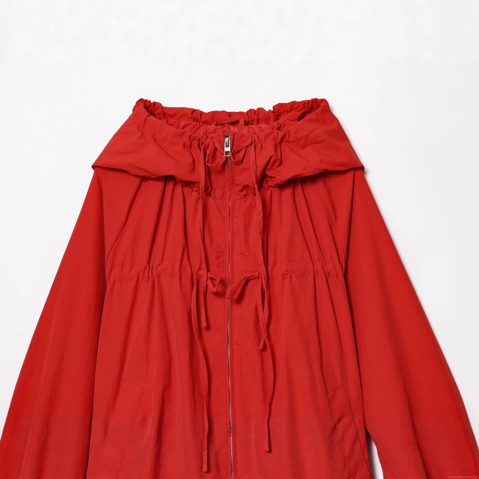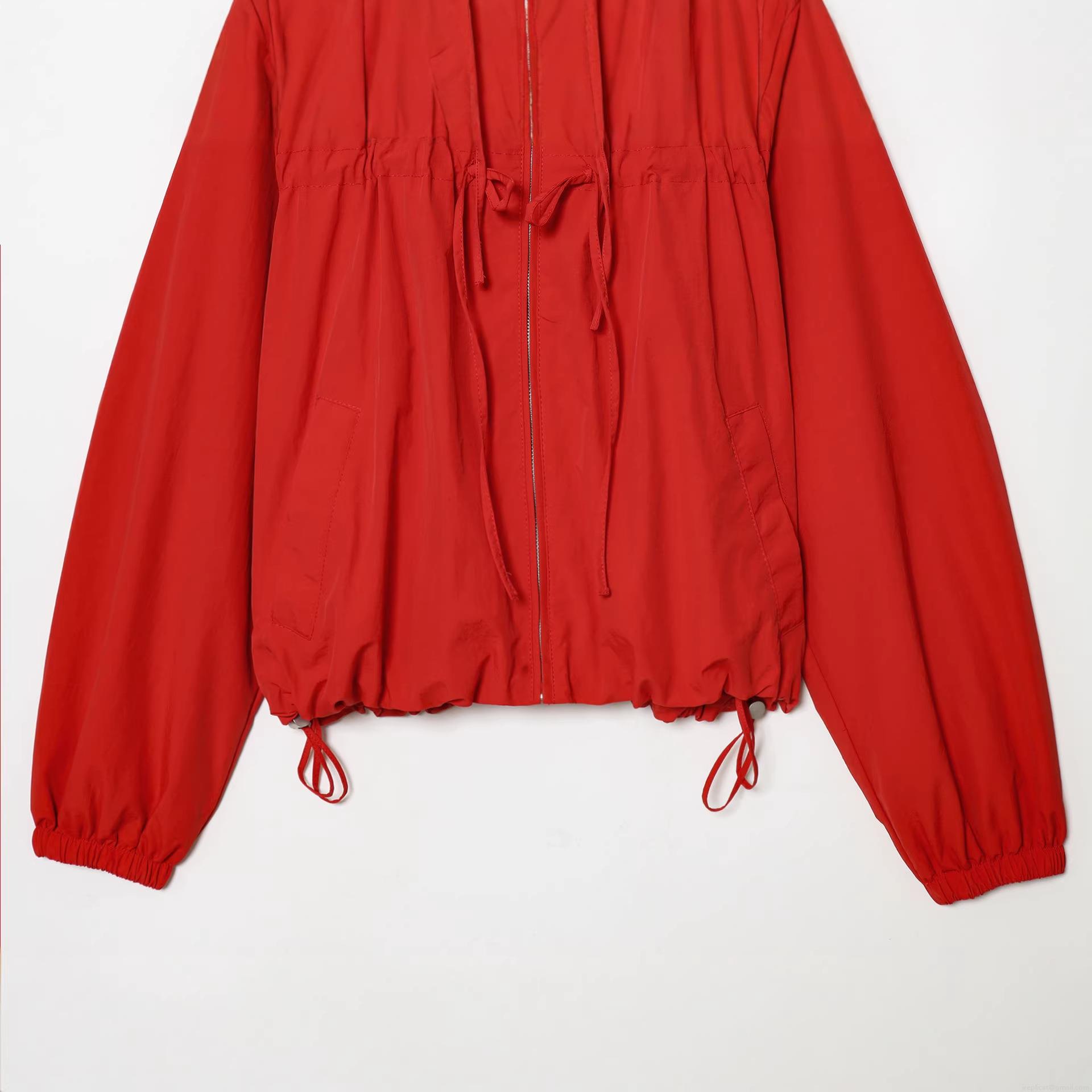 • Women's French Style Hooded Windbreaker Jacket Lightweight Nylon Drawstring Waist Short Outerwear Solid Color Long Sleeve Windproof Coat For Women Casual Outdoor Spring Autumn