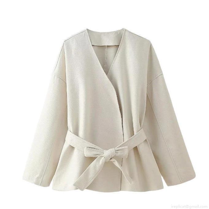 Women's French Style Woolen Feel Jacket Loose Casual Outerwear With Tie Belt Solid Color Lapel Long Sleeve Coat For Autumn Winter Streetwear Lady