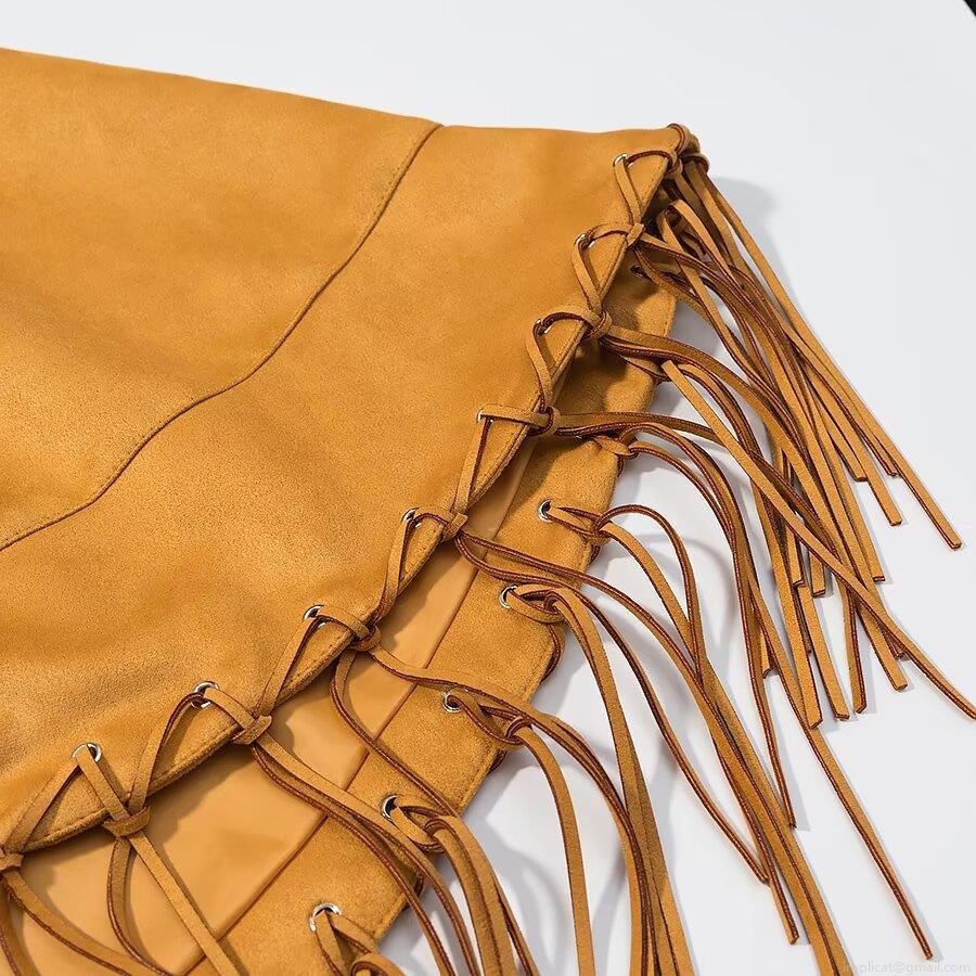 • Women's Ginger Yellow Faux Suede Fringe Poncho Cape Jacket Tassel Hem Lapel Loose Sleeveless Short Outerwear Streetwear Autumn Winter Coat