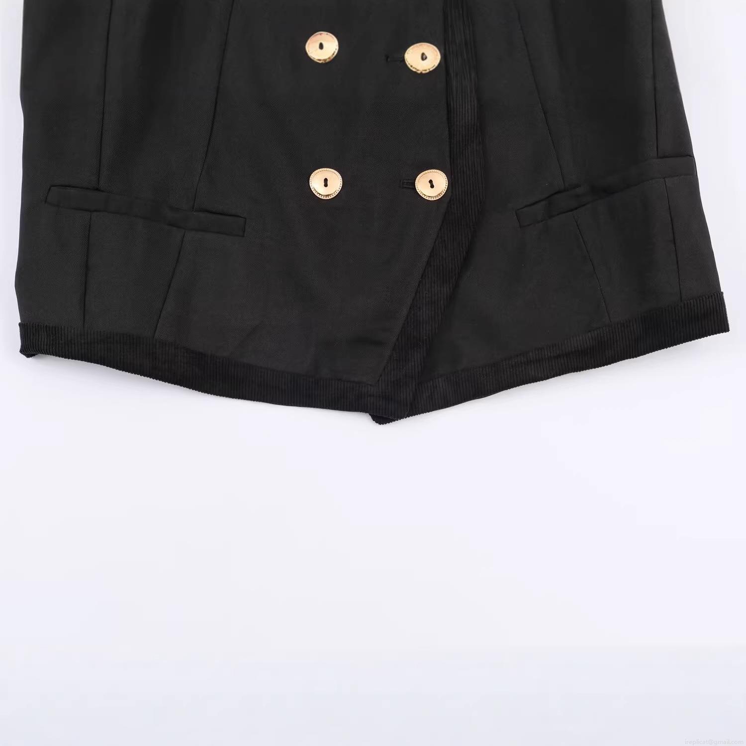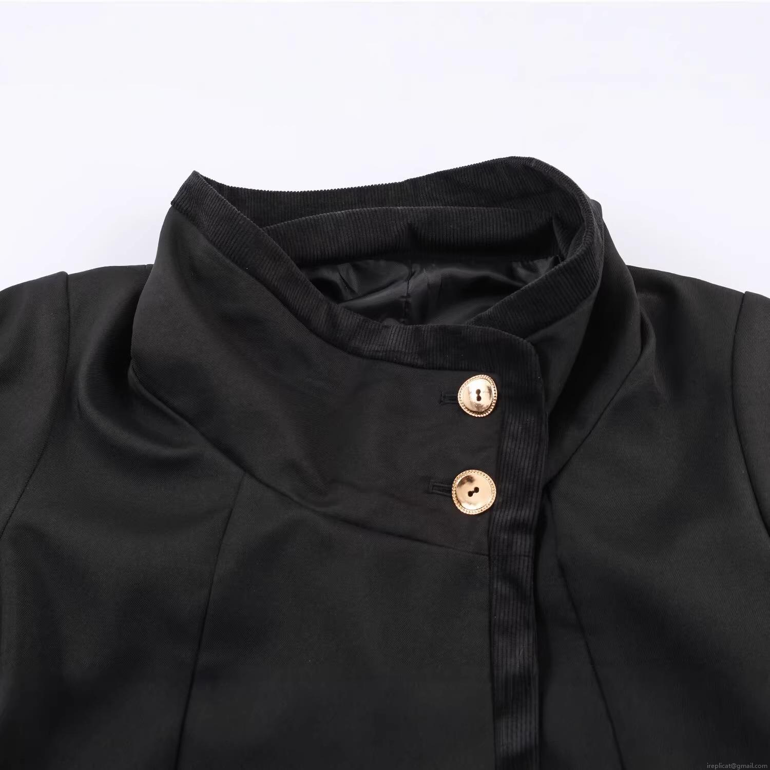 Women's Gothic Stand Collar Long Sleeve Double Breasted Short Jacket With Gold Buttons Fashion Streetwear Casual Polyester Outerwear Coat Black