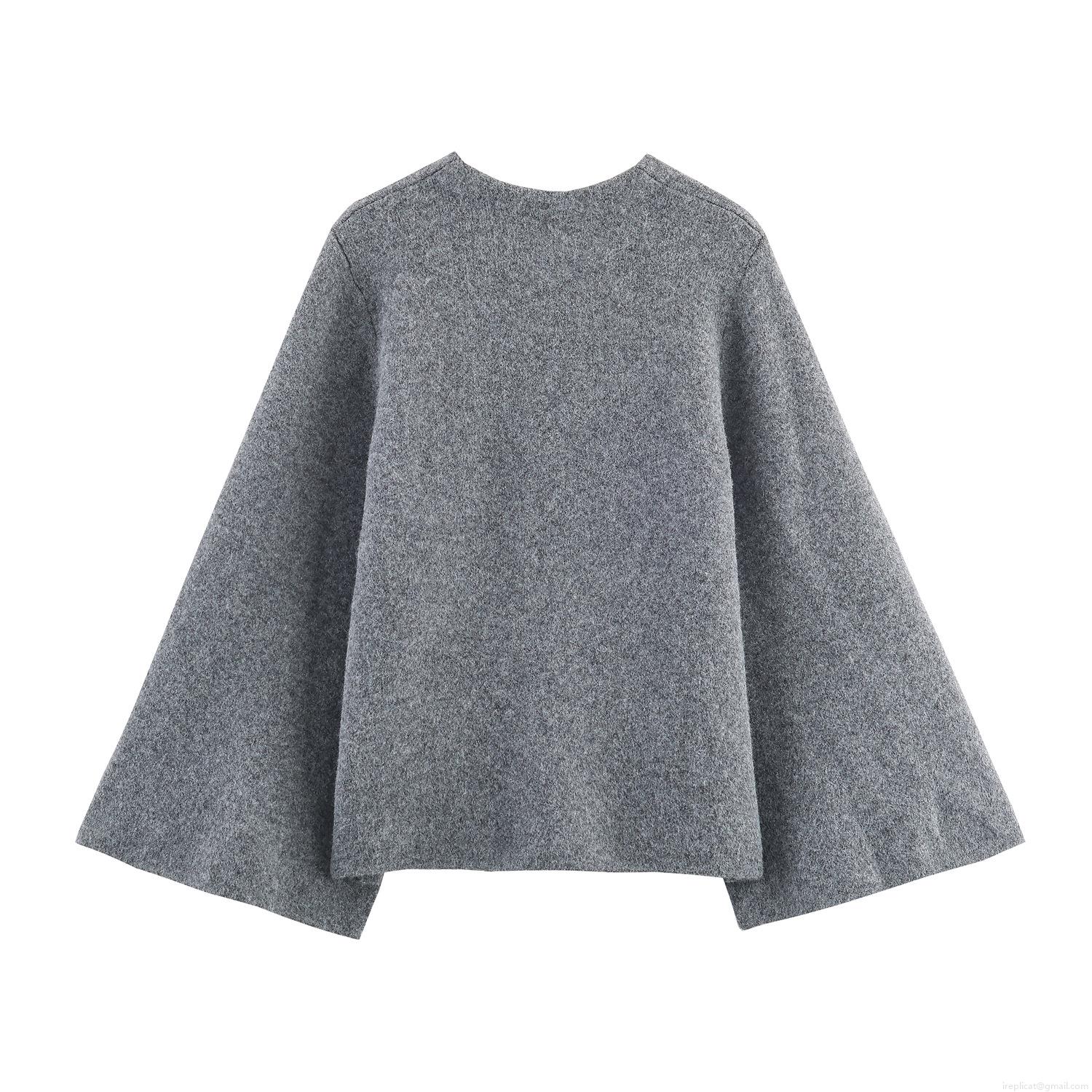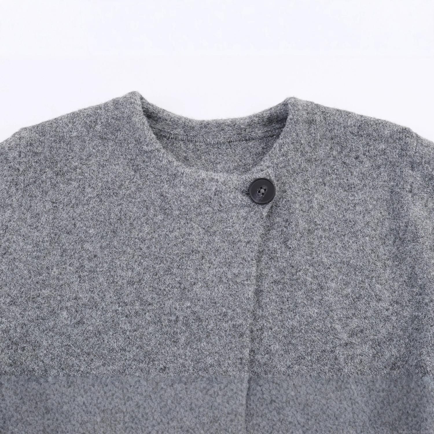 • Women's Grey Woolen Texture Cape Coat Round Neck Single Button Side Tie Design Loose Long Sleeve Jacket Autumn Winter Minimalist Western Style Outerwear