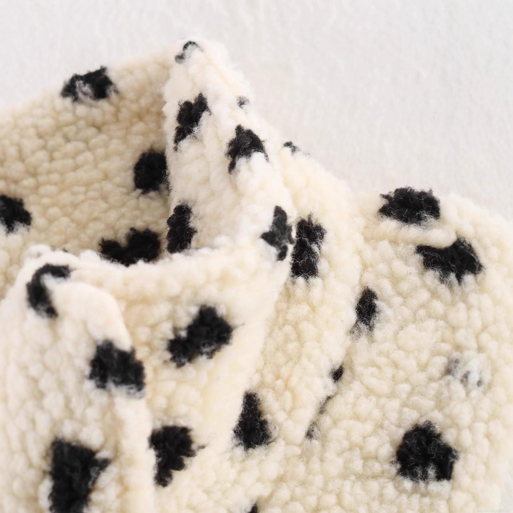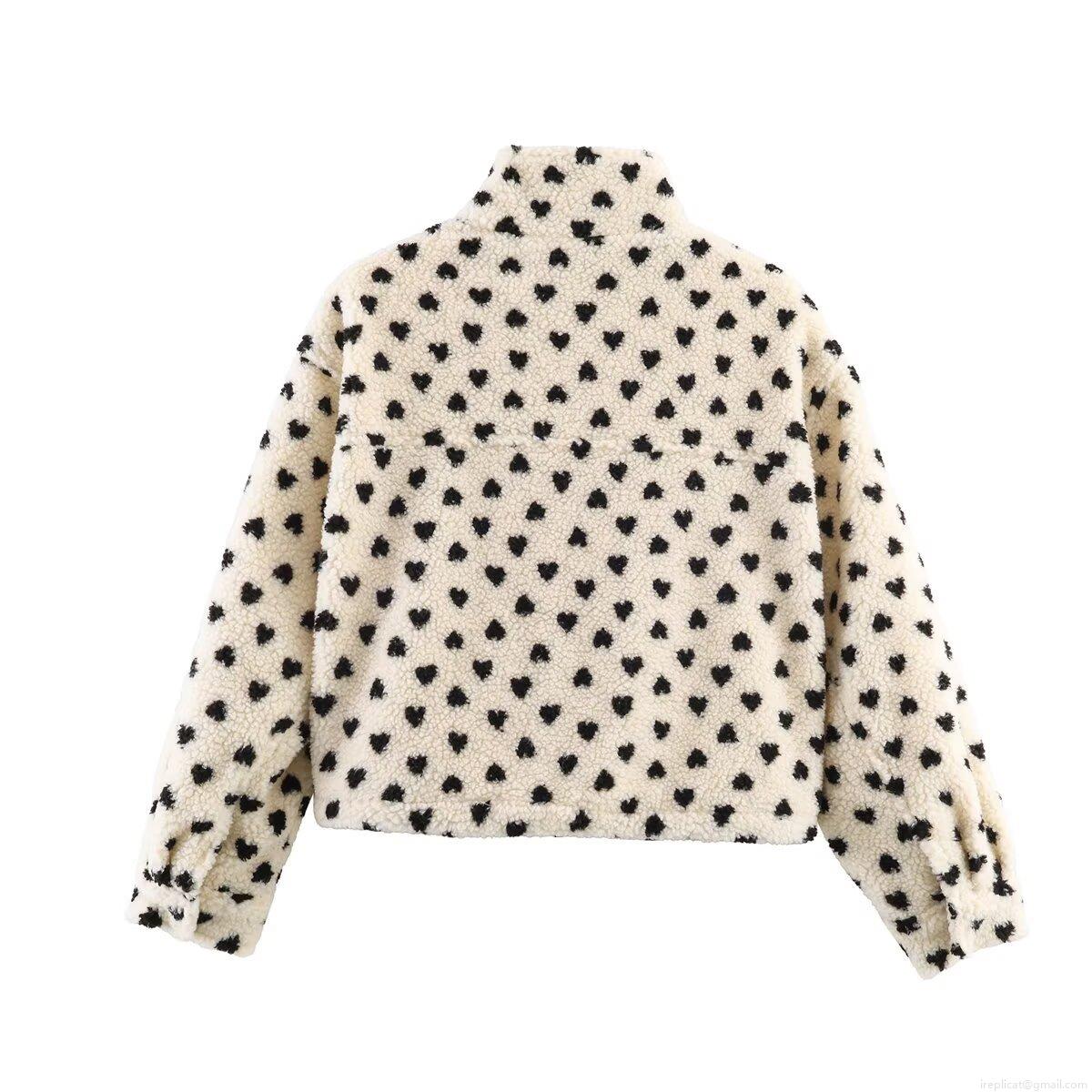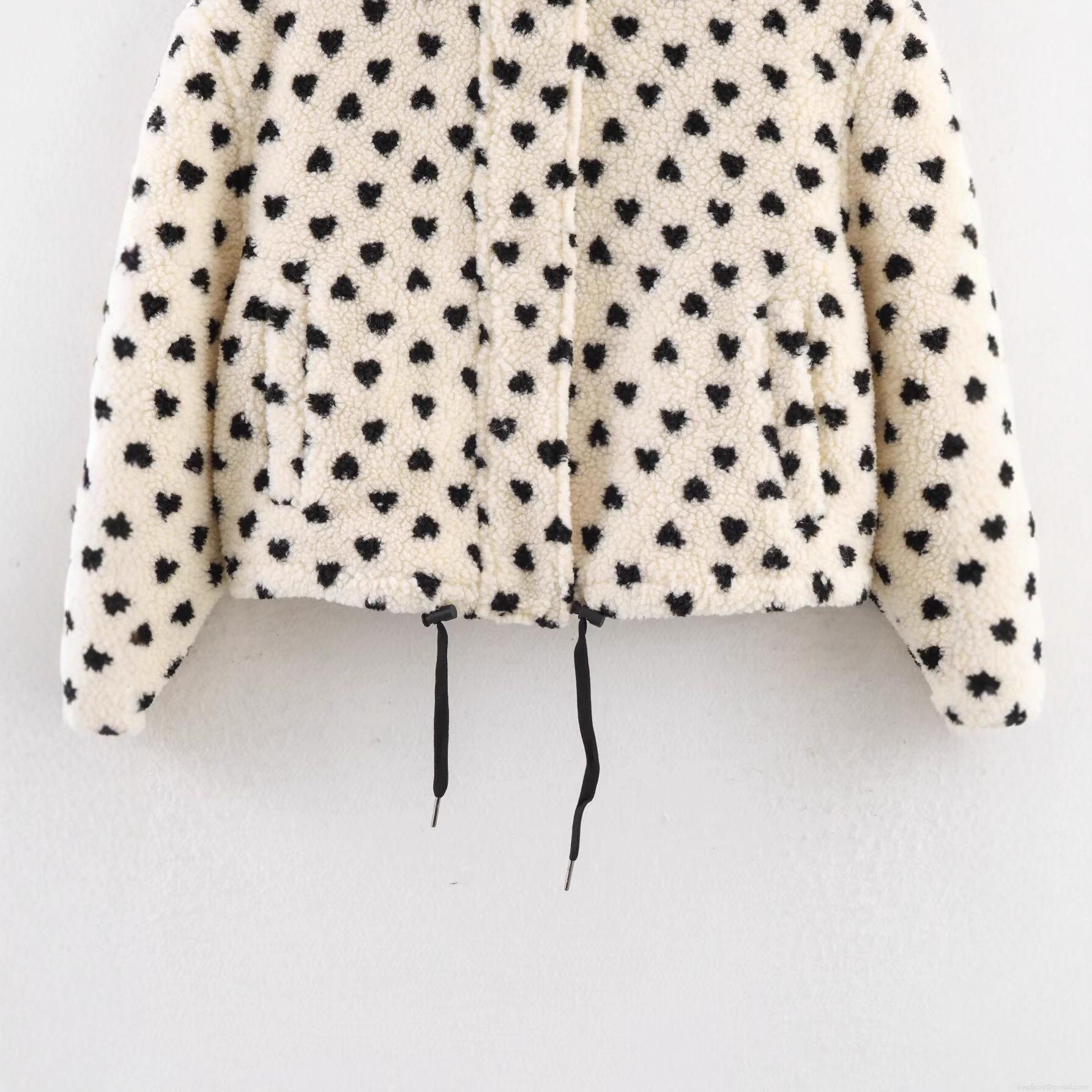 • Women's Heart Print Sherpa Fleece Jacket Loose Stand Collar Full Zip Short Coat Warm Winter Streetwear Outerwear With Drawstring Hem
