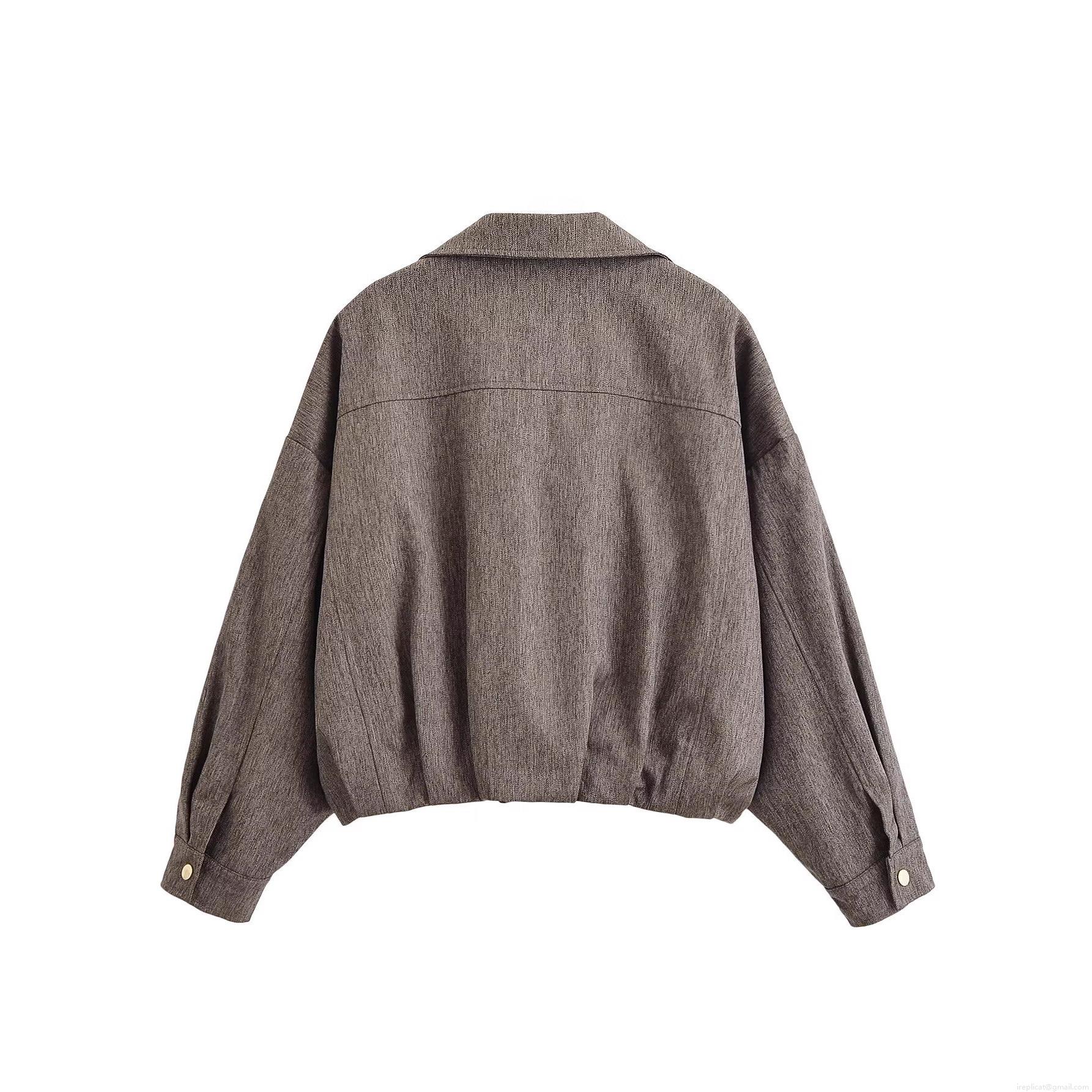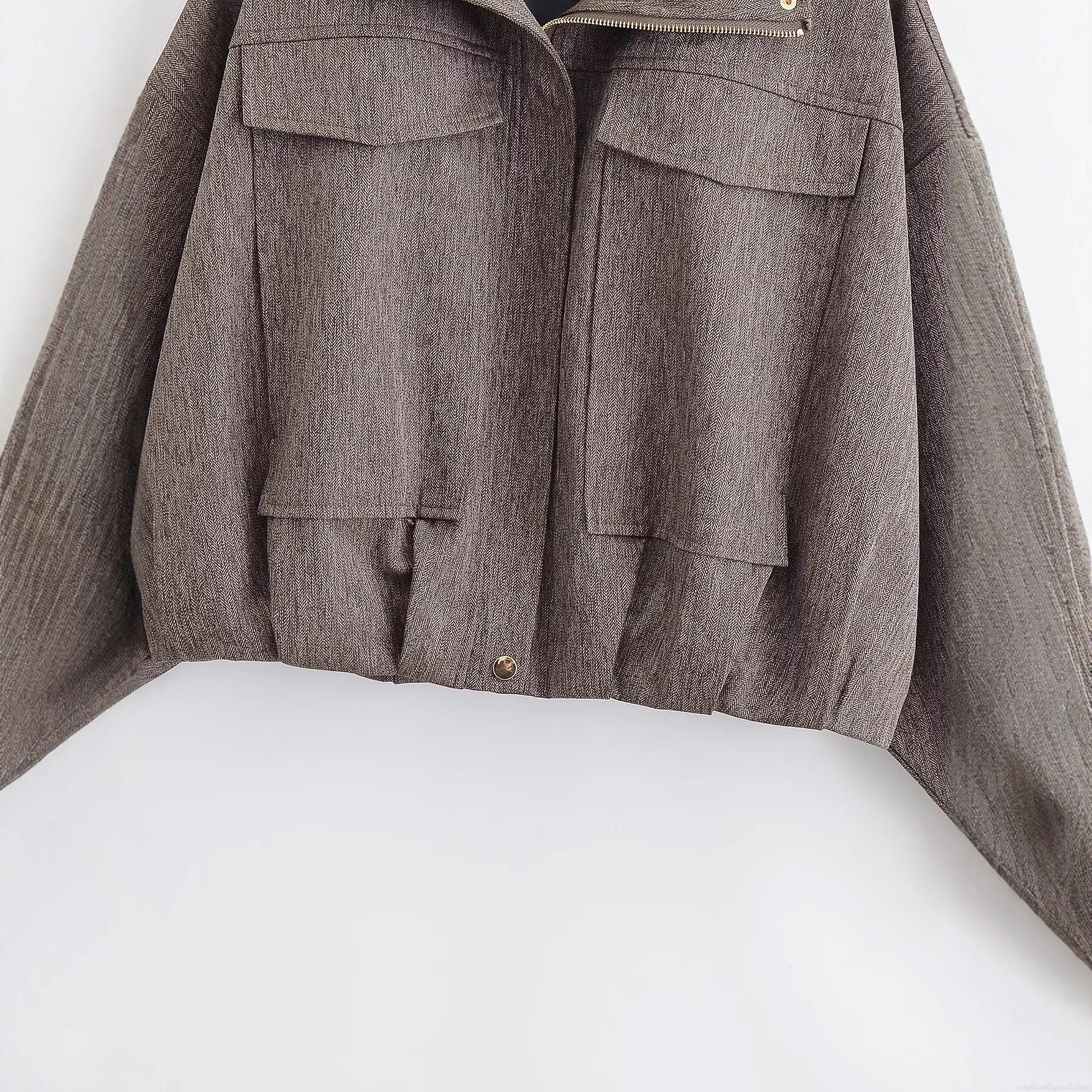 • Women's Herringbone Texture Baseball Jacket Retro Streetwear Outerwear With Large Pockets Standing Collar Long Sleeve Autumn Winter Fashion Jacket