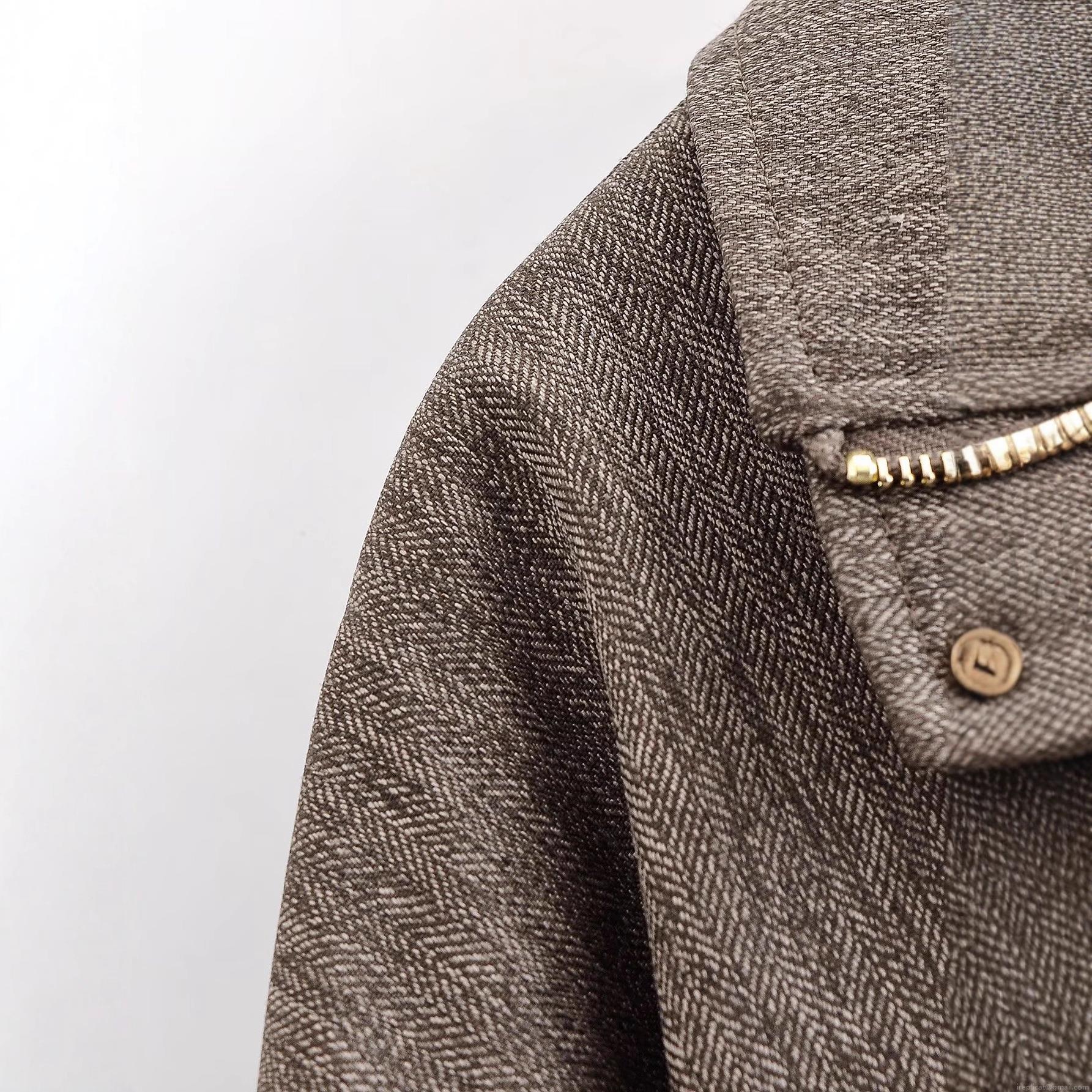 Women's Herringbone Texture Baseball Jacket Retro Streetwear Outerwear With Large Pockets Standing Collar Long Sleeve Autumn Winter Fashion Jacket