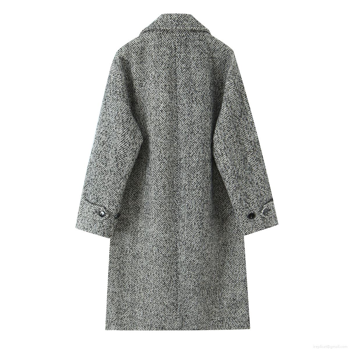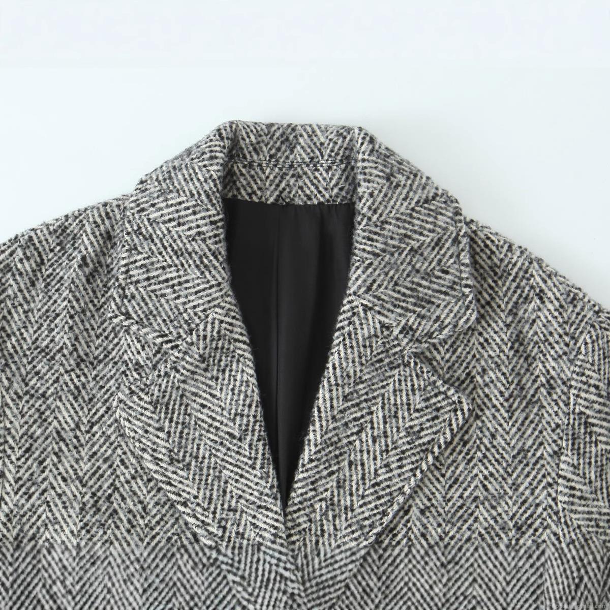 • Women's Herringbone Tweed Long Coat Elegant Lapel Single Breasted Warm Overcoat Chic Office Lady Autumn Winter Outwear Jacket
