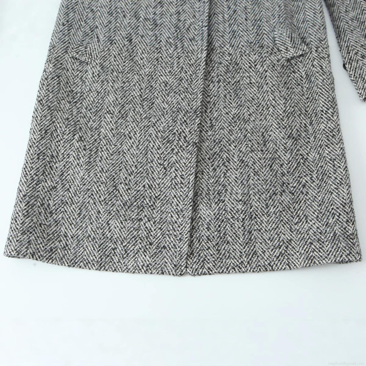 Women's Herringbone Tweed Long Coat Elegant Lapel Single Breasted Warm Overcoat Chic Office Lady Autumn Winter Outwear Jacket