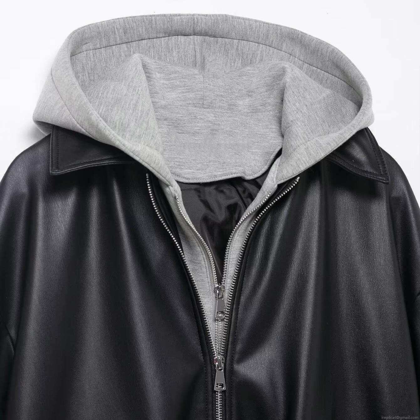 • Women's Hooded Faux Leather Jacket Casual Patchwork Long Sleeve Zipper Coat With Knit Hood Loose Fit Streetwear Outwear For Autumn Winter Ladies