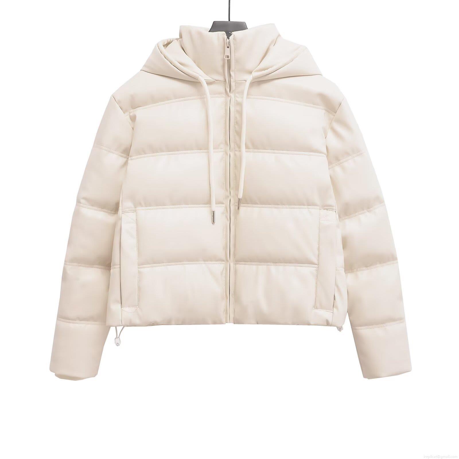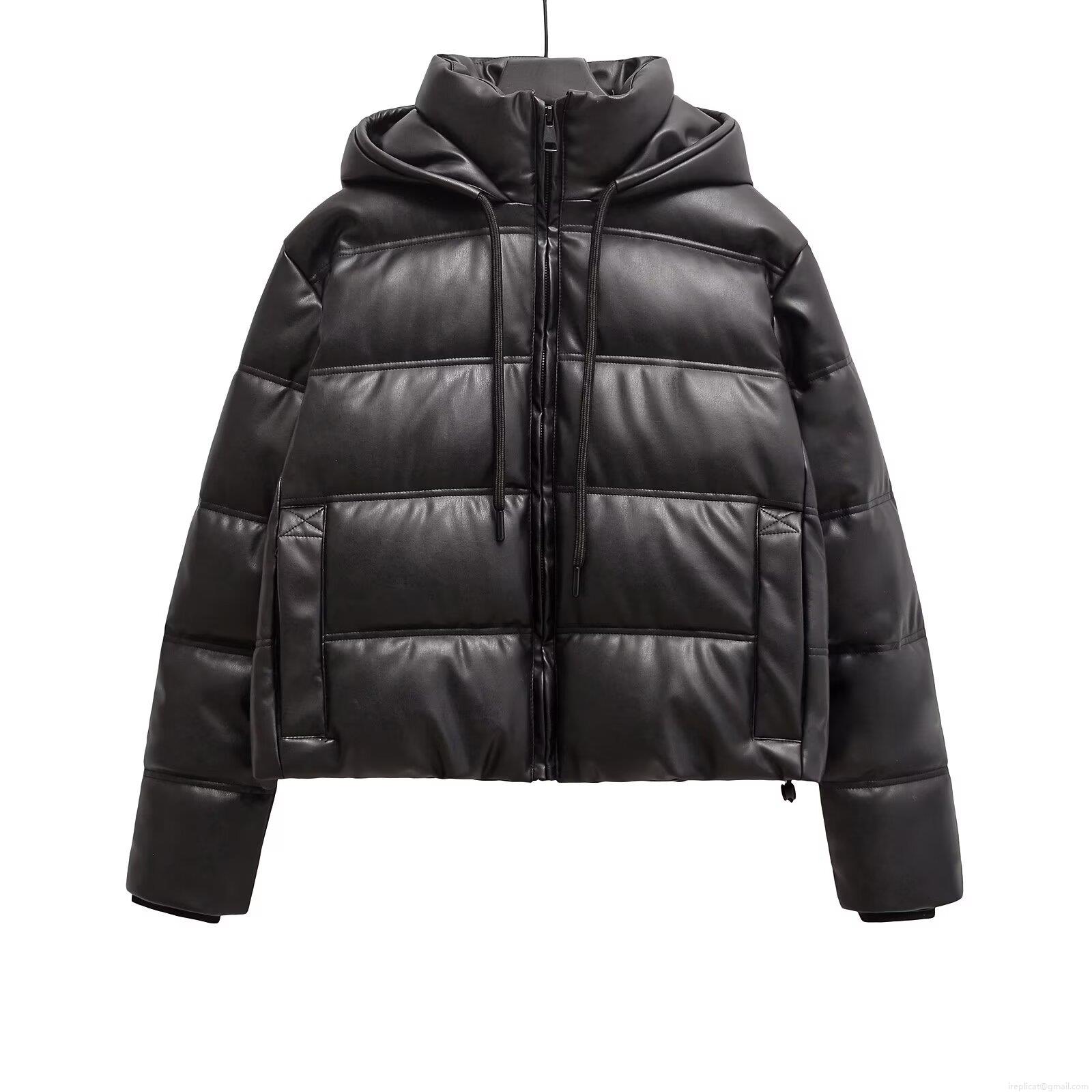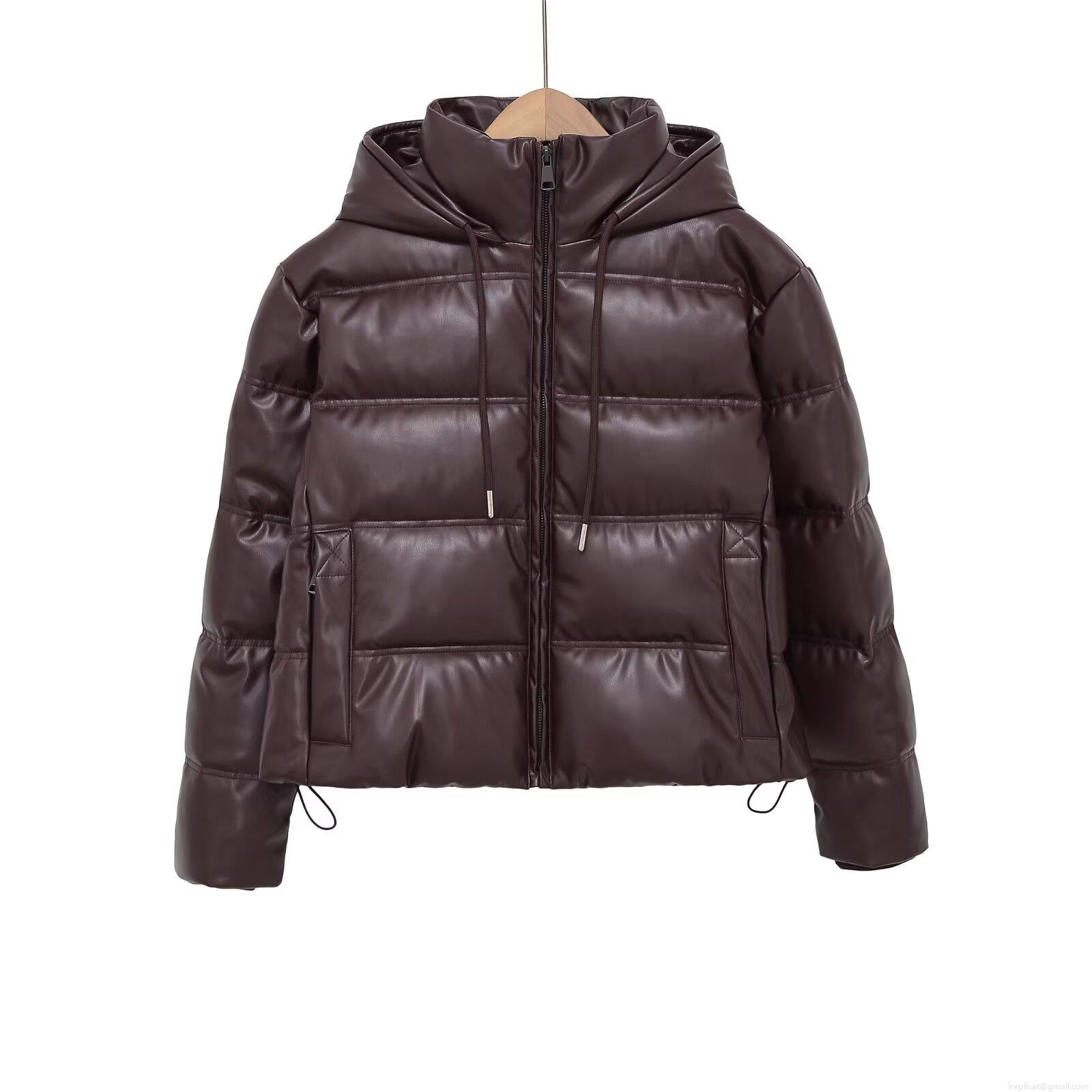 • Women's Hooded PU Leather Puffer Jacket Short Quilted Padded Coat Warm Winter Outerwear Casual Chic Zip Up Windproof Parka Streetwear For Women